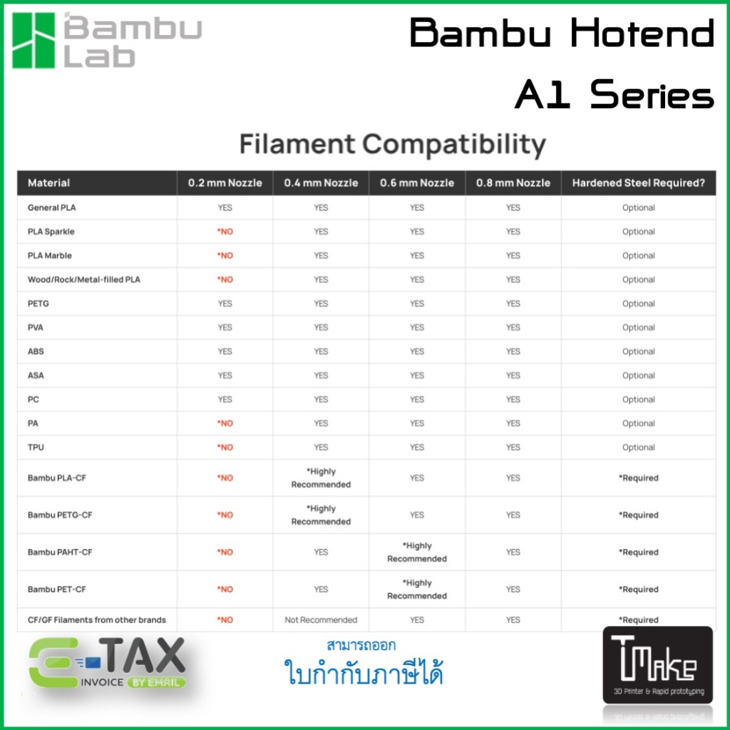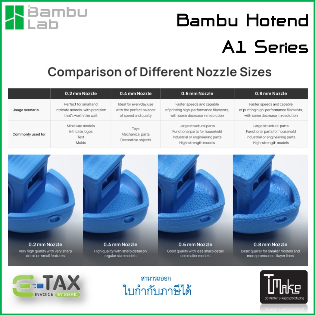 ยกระดับการพิมพ์ 3 มิติของคุณด้วย Bambu Hotend A1 Series อะไหล่แท้จาก Bambu Labs ออกแบบมาเพื่อตอบโจทย์การใช้งานที่หลากหลาย ด้วยหัวฉีด (Nozzle) ขนาดต่าง ๆ ที่เหมาะสมกับวัสดุและความต้องการเฉพาะของคุณ: