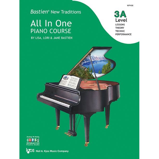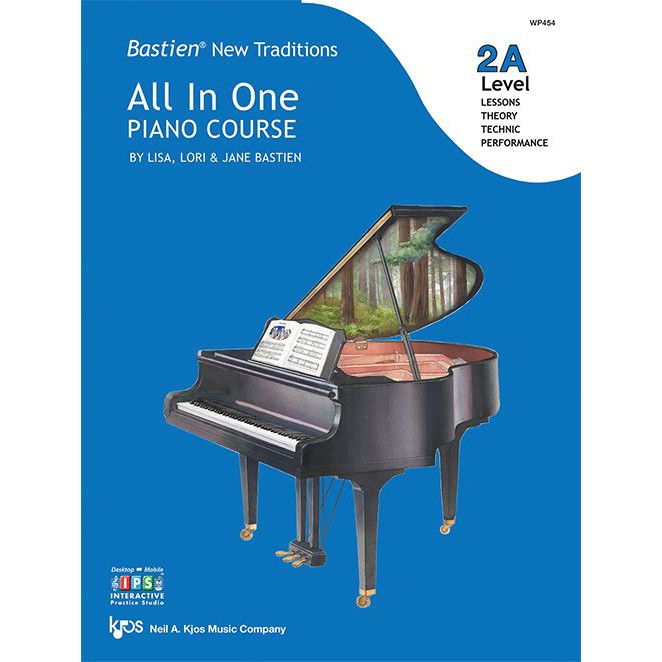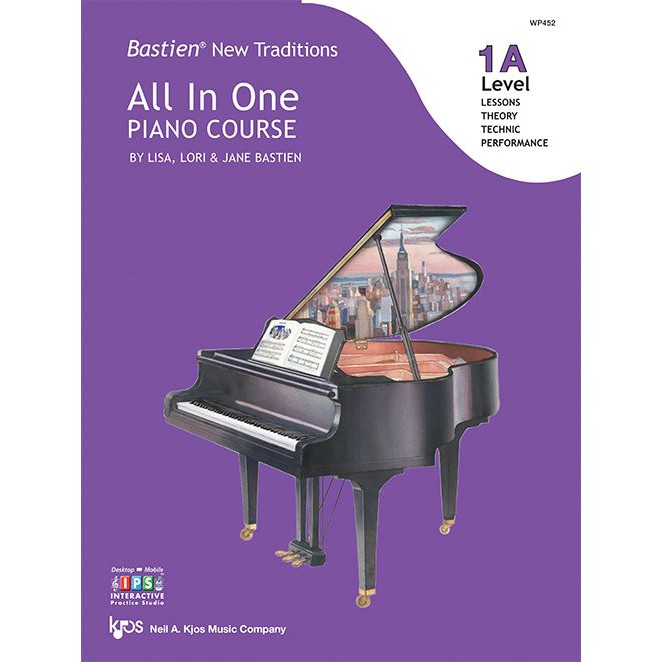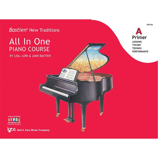 Bastien New Traditions is a comprehensive and integrated method for beginning piano study that is easy to use and paced just right for today’s busy students. Concepts are presented in a holistic way, with lesson, theory, and technic pages mixed with attractive performance pieces all in the same volume. A gradual multi-key approach is used allowing students to experience complete keyboard knowledge. There is a clear step-by-step presentation of concepts and skills with straightforward, simple reinforcement and review throughout the series. The learning sequence is carefully graded to ensure steady progress, and students will love the selection of music as well as the beautiful watercolor illustrations.