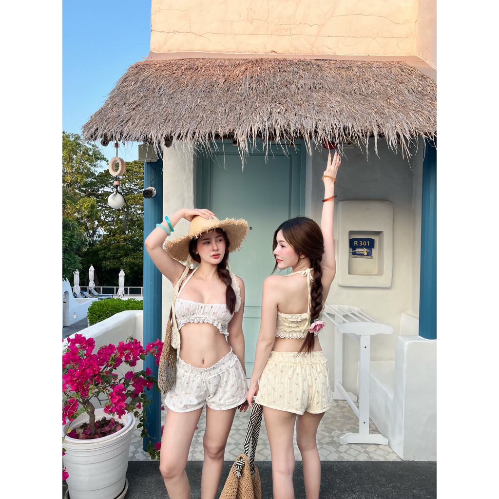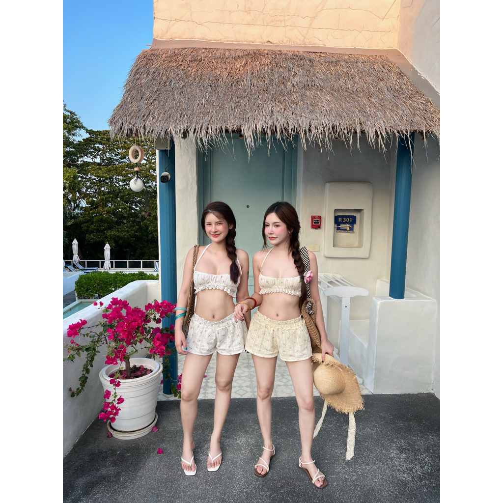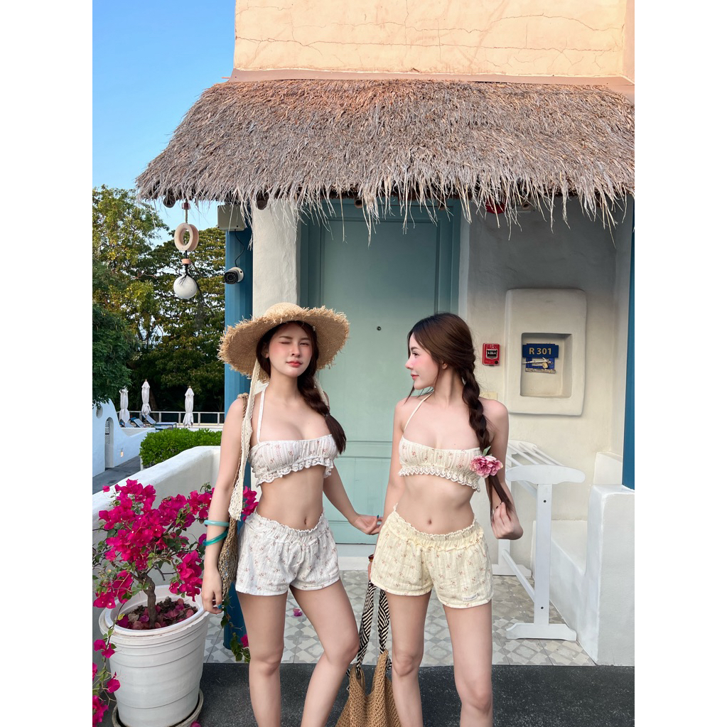 ลายกุหลาบตัดลูกไม้หวานๆ เสื้อจิ๋ว กางเกงใส่ได้ทั้งเอวกลางต่ำสูง 🥺🥑🩷
