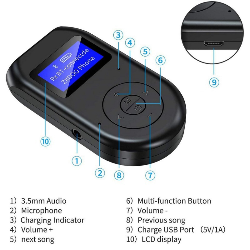 4.Portable:The compact bluetooth adapter is small, lightweight and easy to carry.