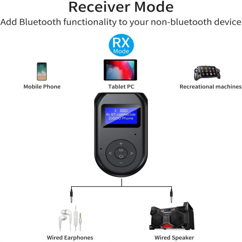 1.Visual screen: unique screen design,Bluetooth transmitter can freely choose the Bluetooth headset or speaker to connect.The Bluetooth name will be displayed on the display, you can freely choose, more convenient, will not be connected by mistake.