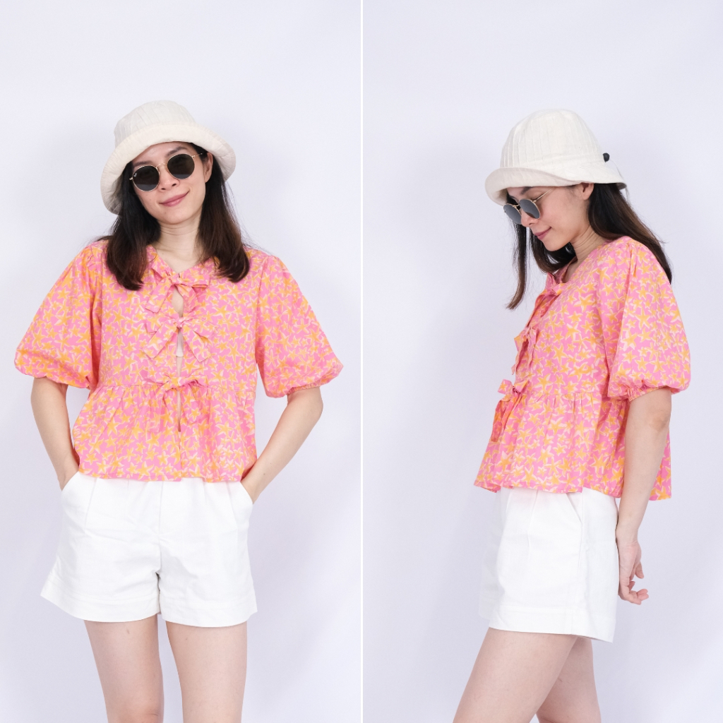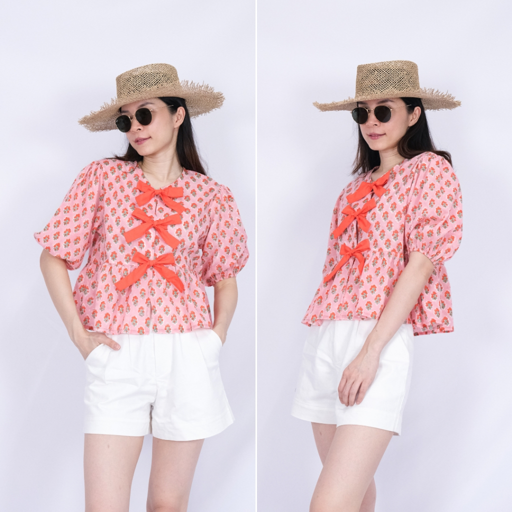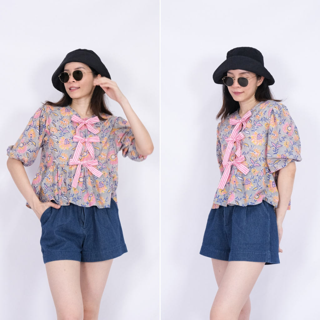 เสื้อผูกโบว์ รุ่นใหม่ แขนพอง จัมพ์ปลายแขน น่ารักสดๆ ทรงนี้กำลังฮิตสุดๆ เลยค่า