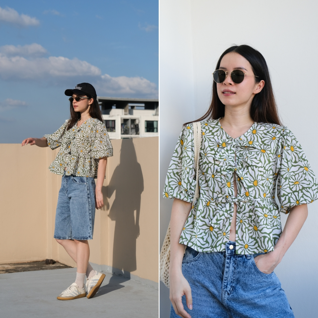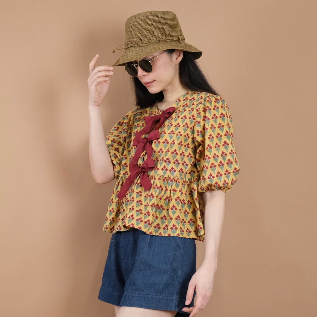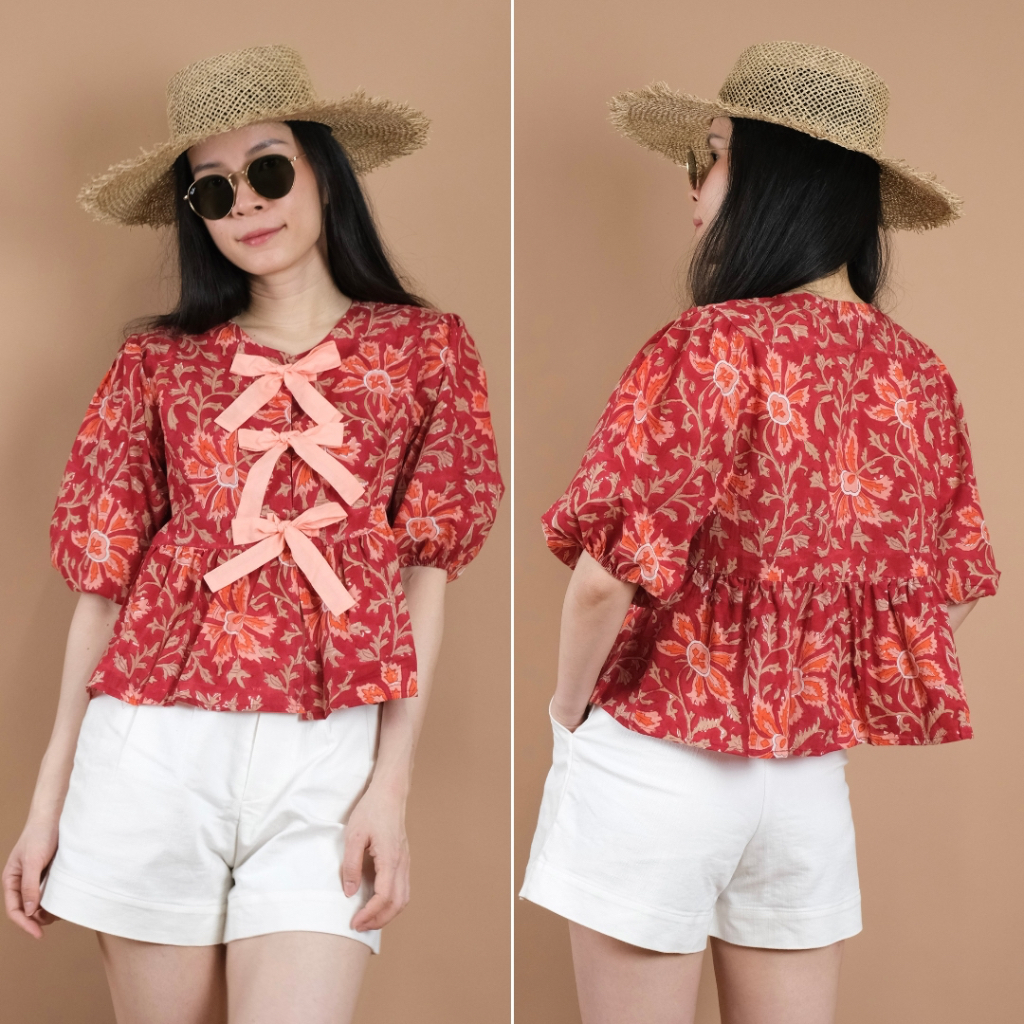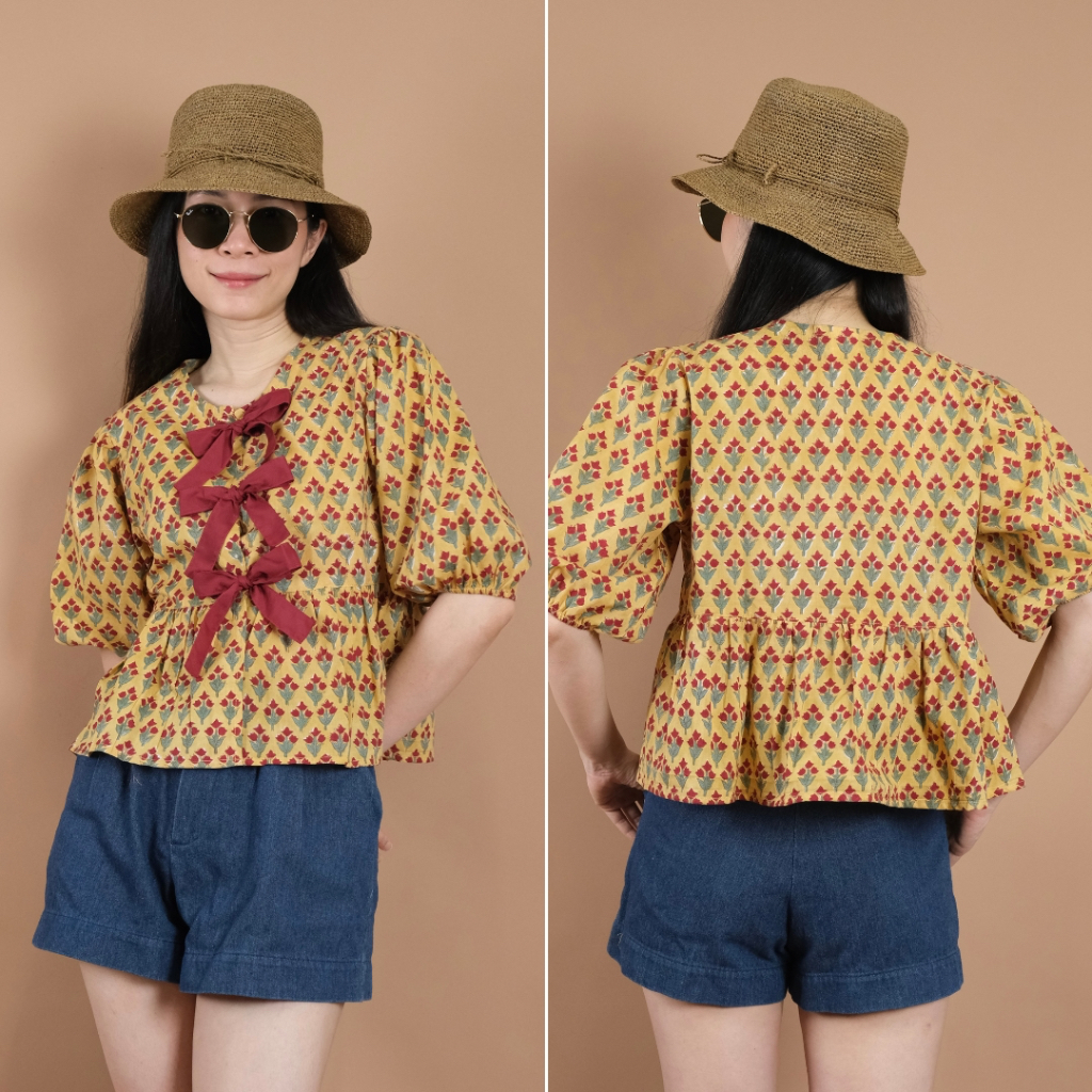 เสื้อผูกโบว์ รุ่นใหม่ แขนพอง จัมพ์ปลายแขน น่ารักสดๆ ทรงนี้กำลังฮิตสุดๆ เลยค่า