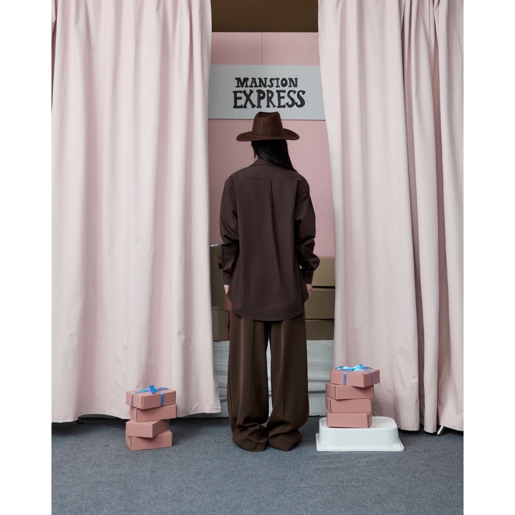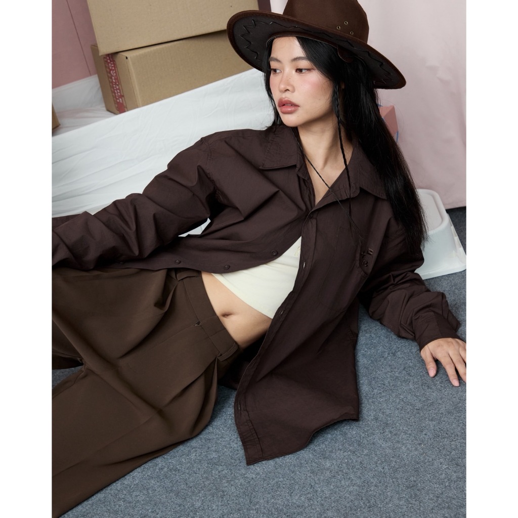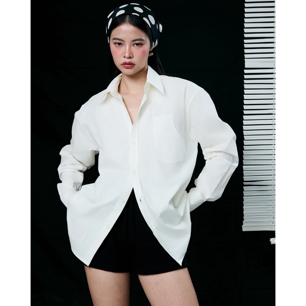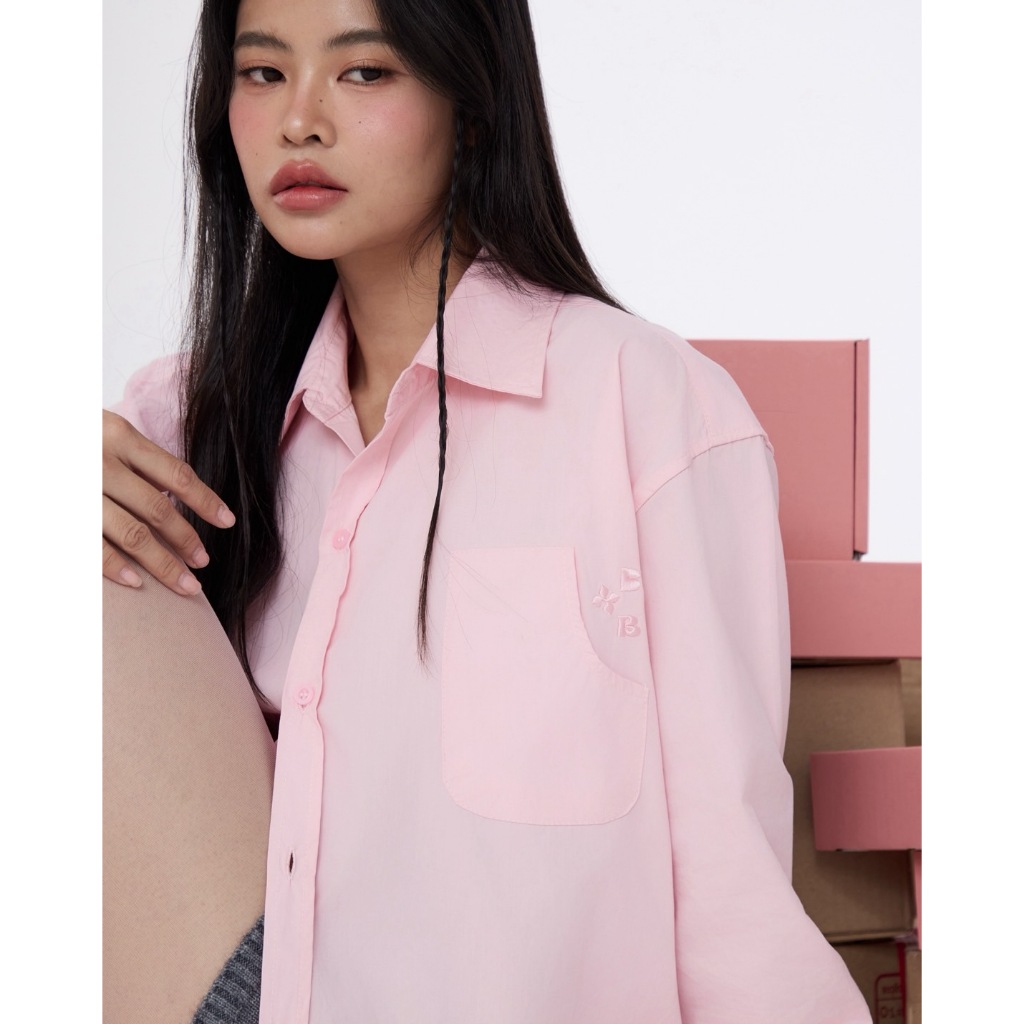 BXB - BON BON OVERSIZE SHIRT เสื้อโอเวอร์ไซต์เชิ๊ตสีพื้น ปักโลโก้ (ส่งด่วน)