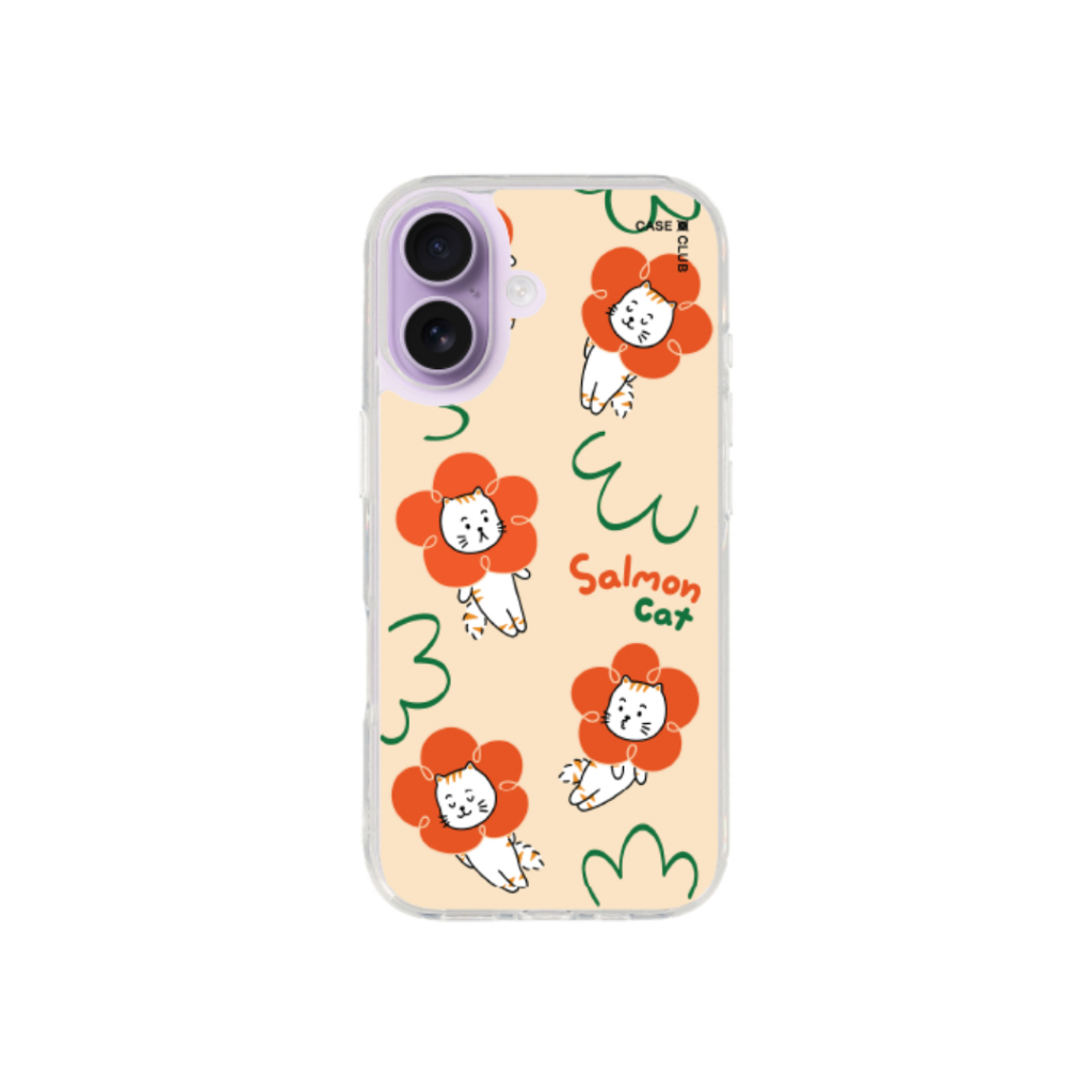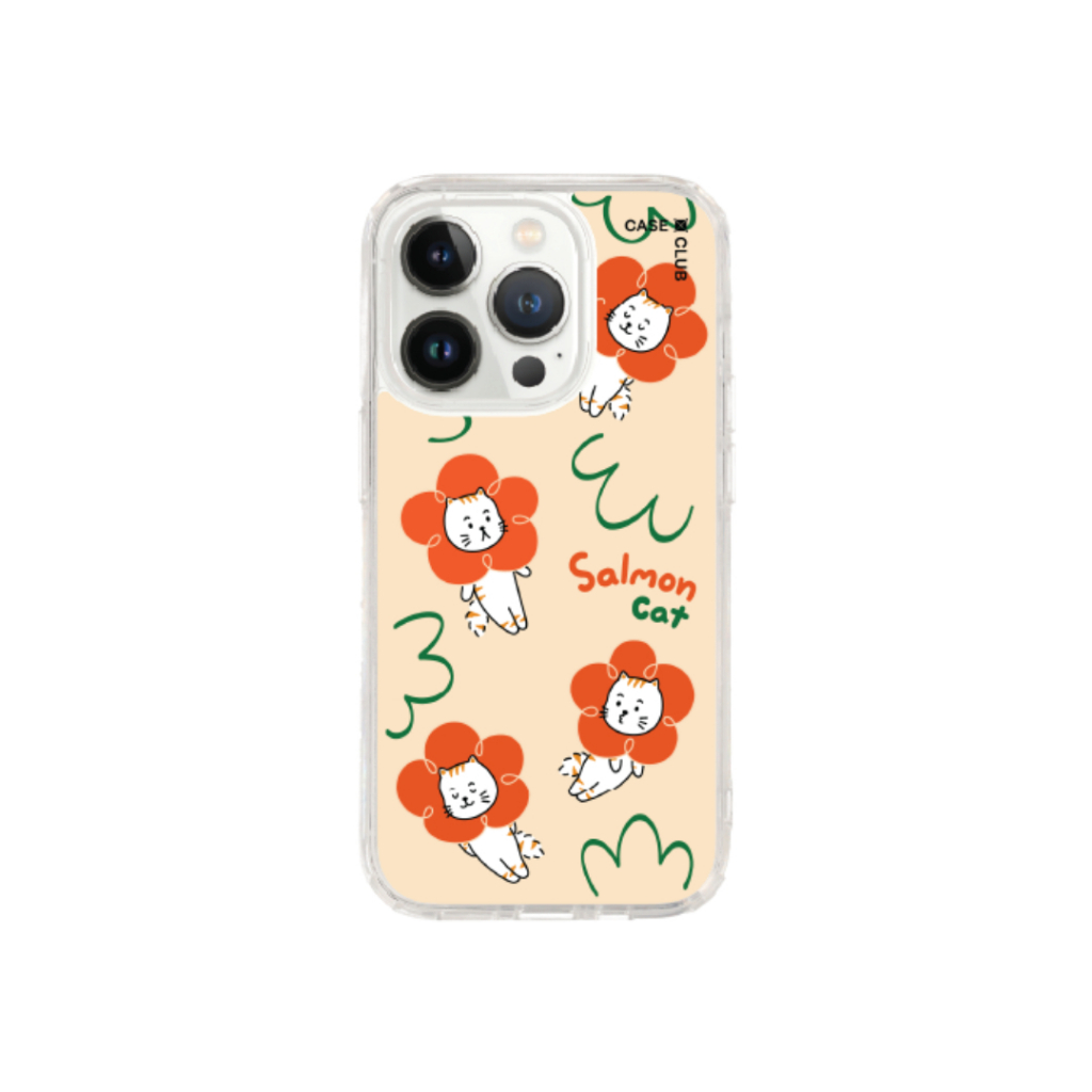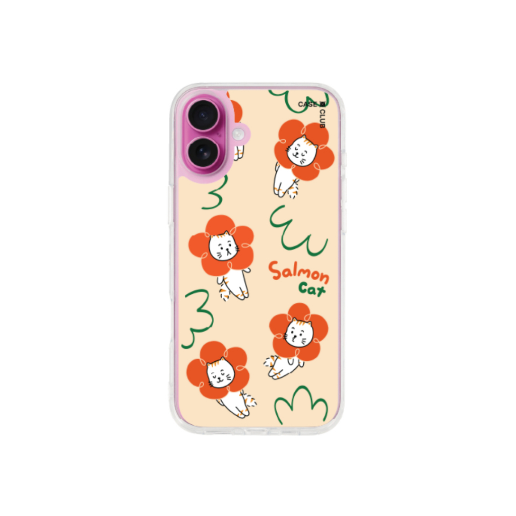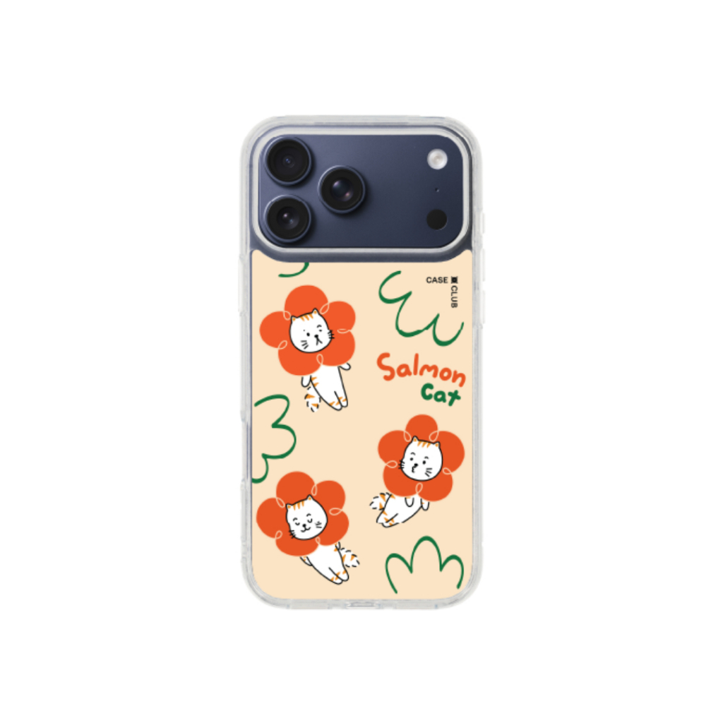 Home Cases, Covers, & Skins CaseClub เคสไอโฟน เคสใส ลาย Salmon Cat Flower สำหรับ i17 Pro Max/i17 Pro/i Air/i17