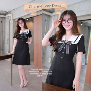 "Romi"Oil" Charmé Bow Dress (Black) K316 ชุดเดรสสีดำ (คอปกขา…