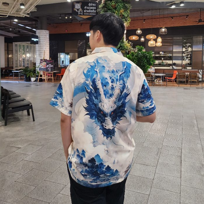 New collection ลายมังกรฟ้าสไตล์จีนลายเส้นให้ความรู้สึกเหมือนการวาดบนผืนผ้าใบลายสีน้ำในโทนสีลายคราม ตัวลายสื่อถึงเทพเจ้ามังกรที่คอยปกป้องหมู่บ้านใฟ้พ้นจากภัยอันตราย