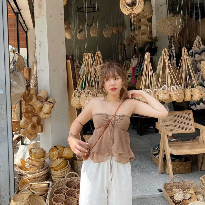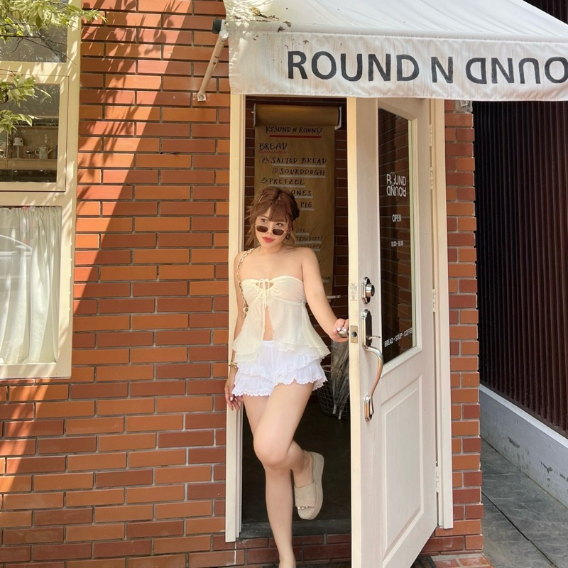 Buddy Top น่ารักจนใจเจ็บบ🤏🏻 เนื้อผ้าเบาใส่สบายมากๆผ้าตัวเดียวกับbuddy candy เลยค่า ตัวนี้แมทกับขาสั้น ขายาวได้หมดเลย ด้านหลังดึงยางยืดให้ครึ่งตัว ยืดได้เยอะมากกก brown / cream