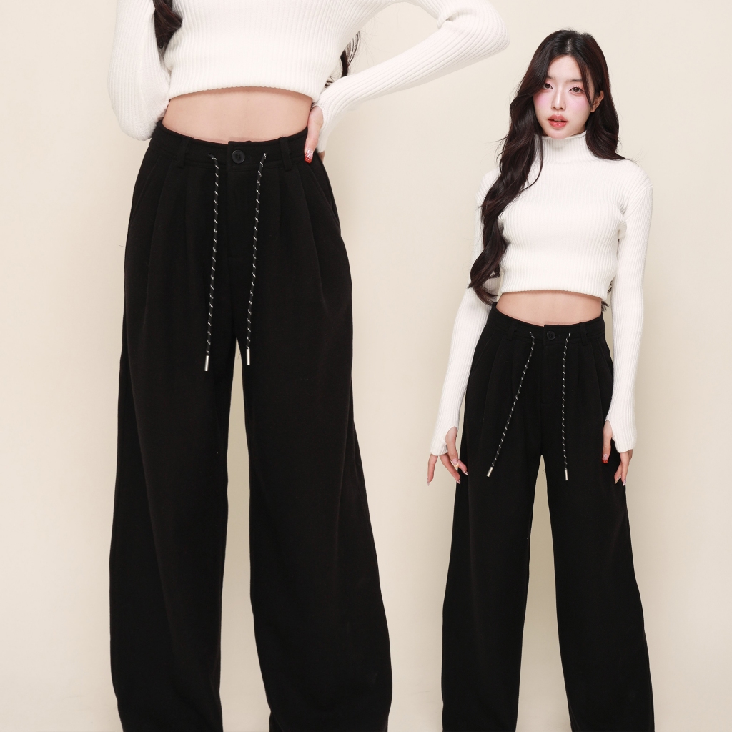 8สี กางเกงขายาว ทรงกว้าง สไตล์สตรีท ย้อนยุค ทรงหลวม มีเชือกท…
