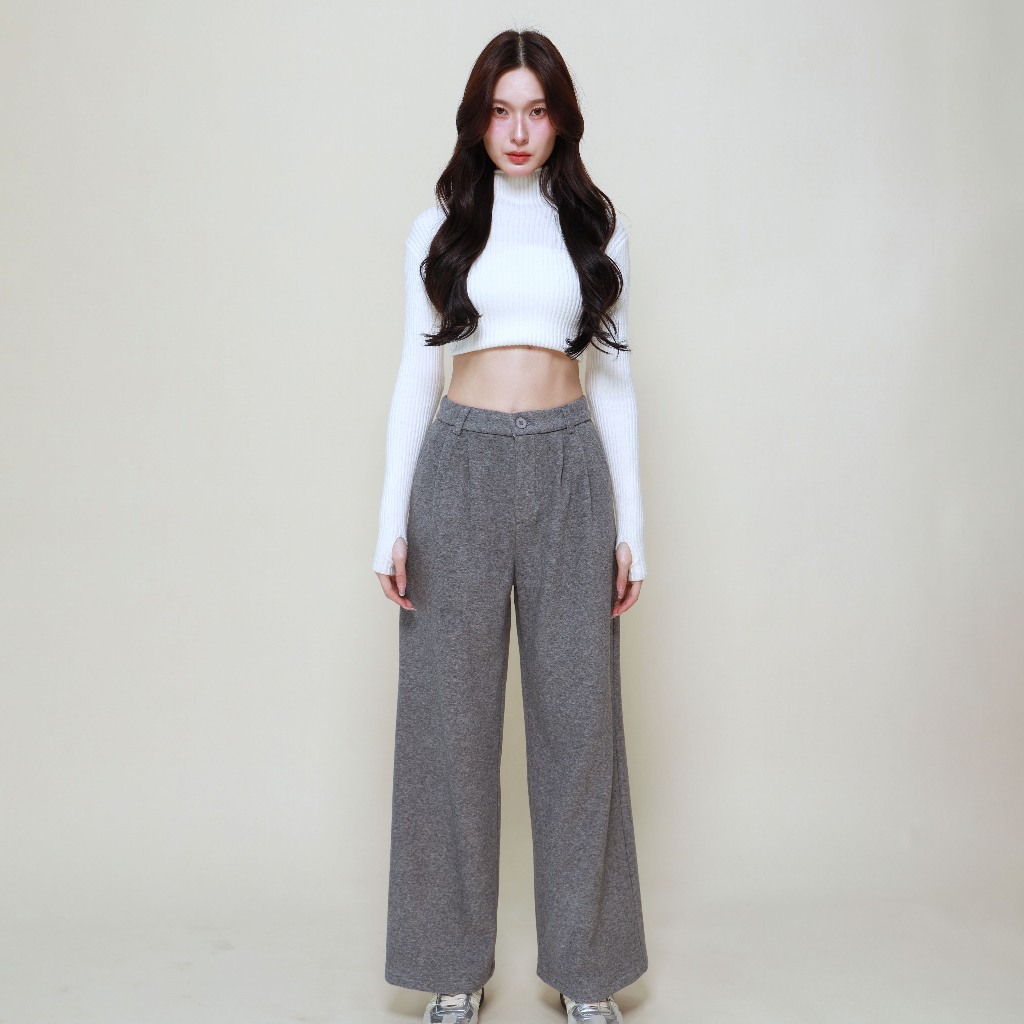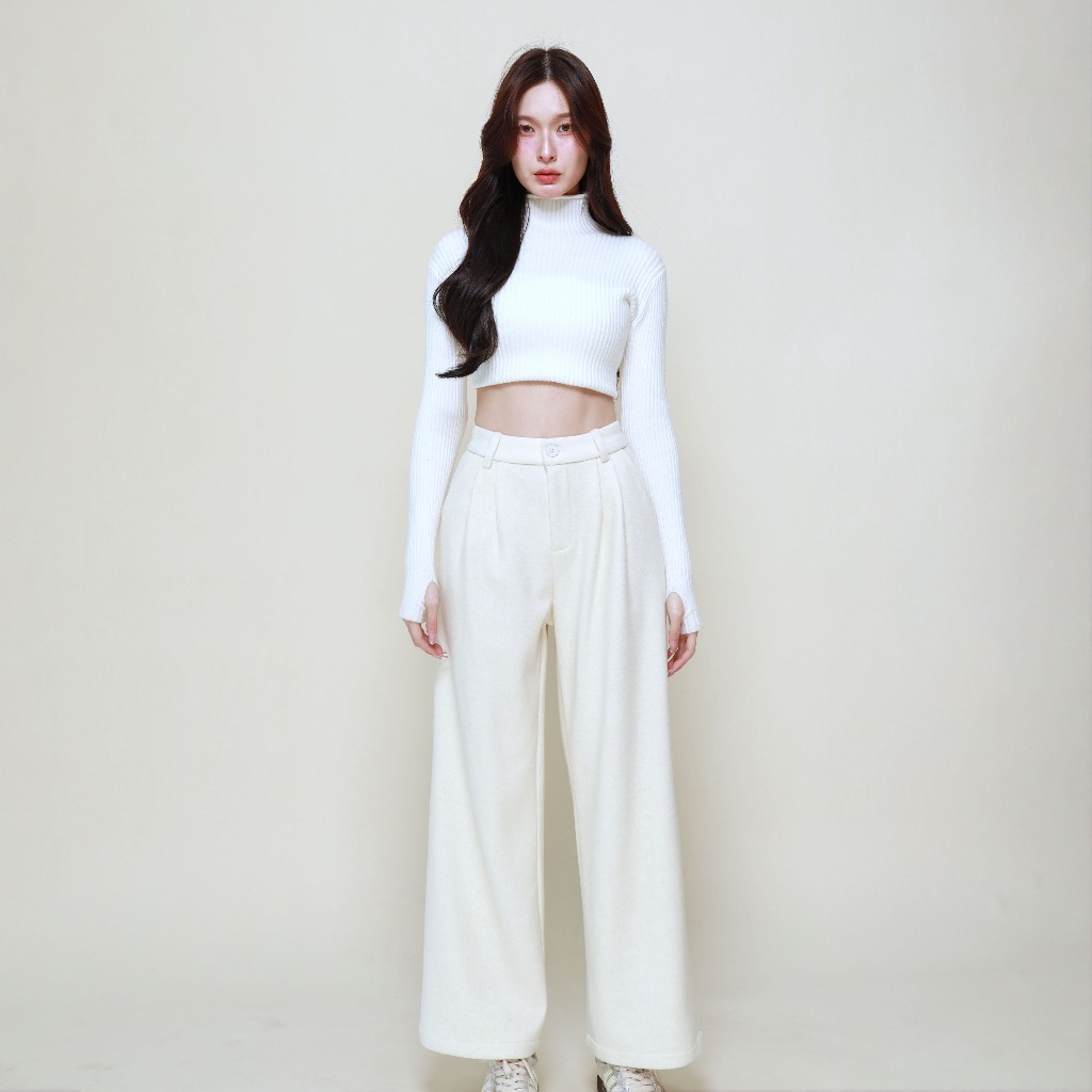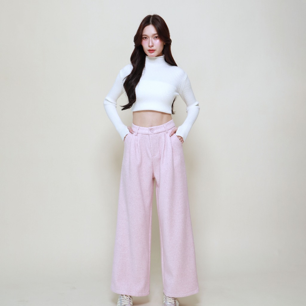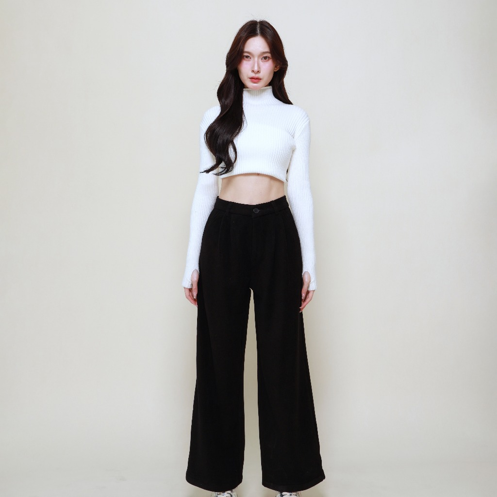 • กางเกง Slack ขายาวทรงกระบอก ดีไซน์เอวสูง ใส่แล้วหุ่นดูเพรียว