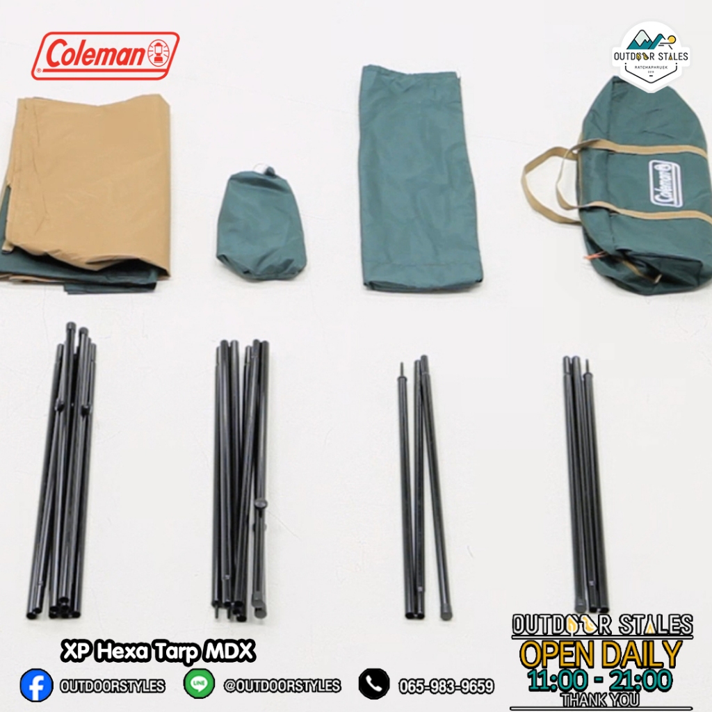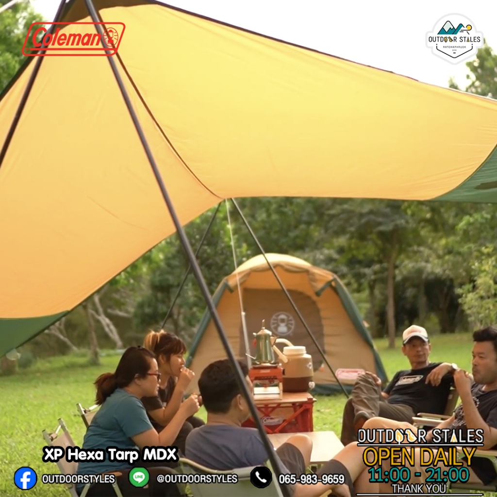 ทาร์ปขนาดใหญ่ พร้อมเสาแบบครบชุด เสาหลักเป็นแบบเสาไขว้ ทำให้กางได้ง่าย และเลือกความสูงได้ตามต้องการ สร้างที่พักผ่อนในช่วงเวลากลางวันให้กับทุกคนในแคมป์ ช่วยกันแดดและกันฝนได้เป็นอย่างดี