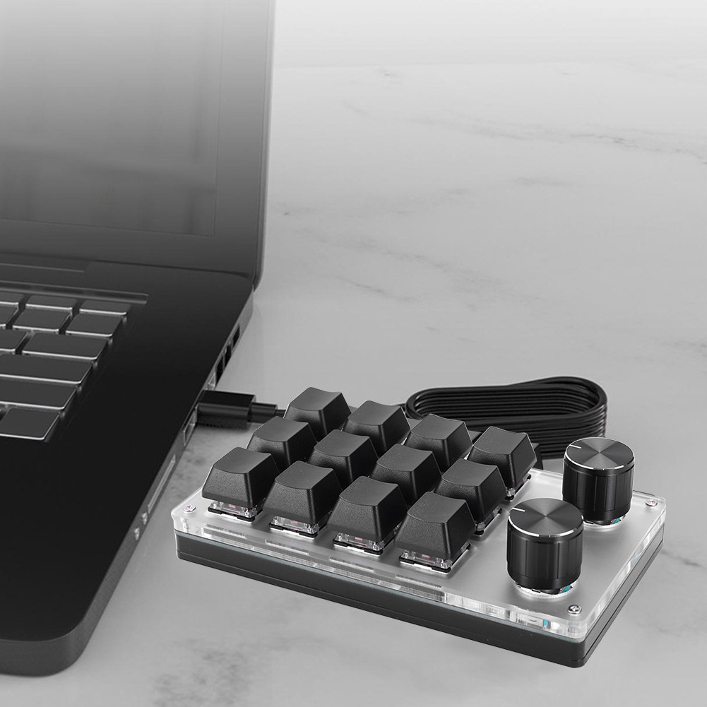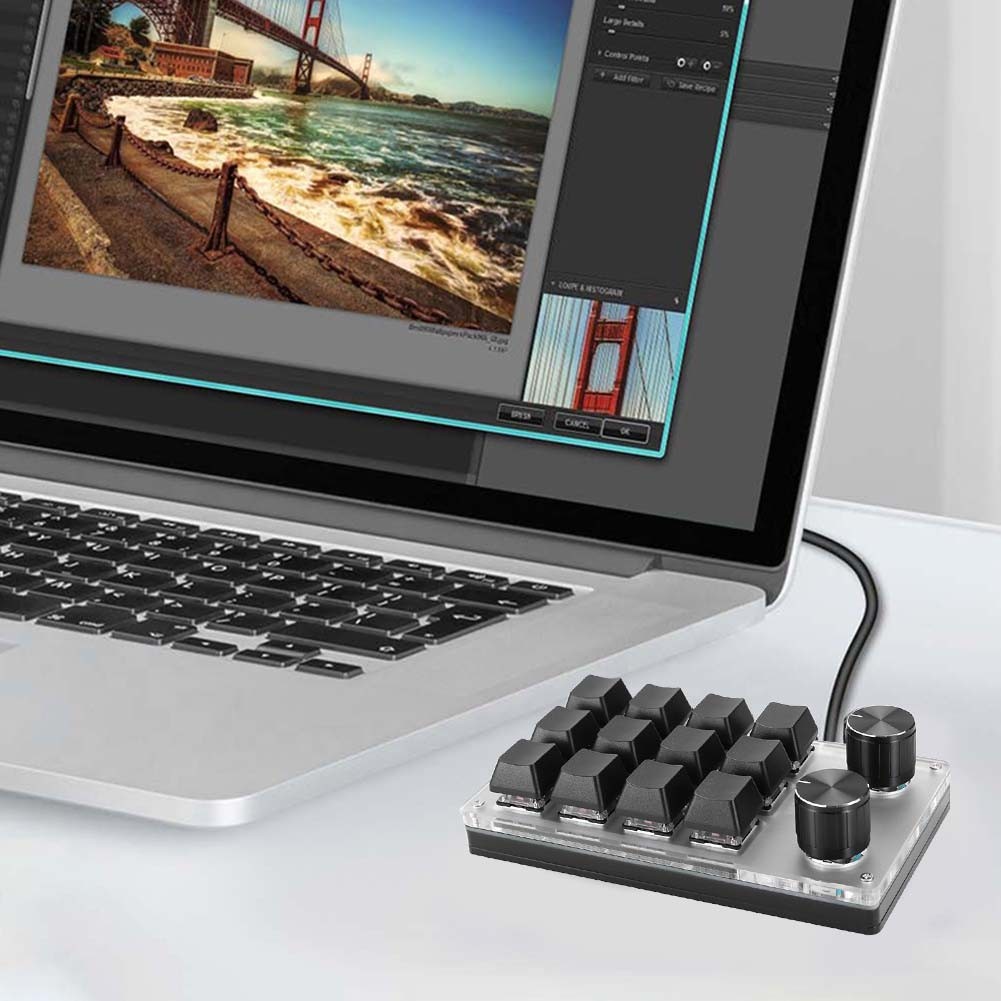 คีย์บอร์ดการเขียนโปรแกรมมาโคร 12 คีย์ 2 ลูกบิดแป้นพิมพ์แบบกำหนดเองบลูทู ธ ที่เข้ากันได้ / มีสายคีย์บอร์ดสำหรับเล่นเกมแบบใช้มือเดียว Hotswap สวิตช์สีแดงสำหรับเกมเมอร์ / นักออกแบบ / ตัวแก้ไขวิดีโอ