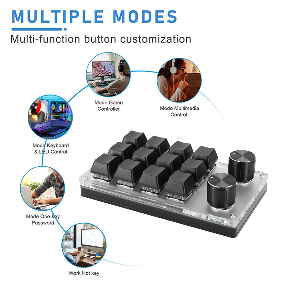 สามารถตั้งโปรแกรมได้ 12 ปุ่มปุ่มหมุนตามเข็มนาฬิกา 12 ปุ่มและปุ่ม 2 ปุ่มสามารถตั้งโปรแกรมได้: 12 ปุ่มปุ่มหมุนตามเข็มนาฬิกาสามารถปรับแต่งการหมุนตามเข็มนาฬิกาได้