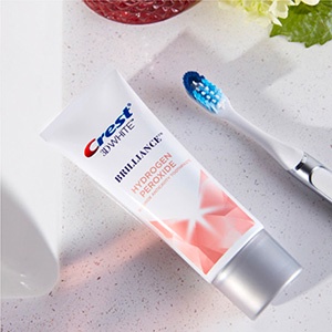 Brighten your smile with Crest 3D White Brilliance Toothpaste with Hydrogen Peroxide, featuring the highest level of peroxide in a toothpaste (4%). Contains Fluoride to prevent cavities. Experience Advanced Whitening that Removes Stains and Deeply Cleans (Surface stains vs. ordinary toothpaste). From America's #1 Whitening Brand (P&G calculation based on U.S. reported sales data for yr ending w/o 12/05/20)