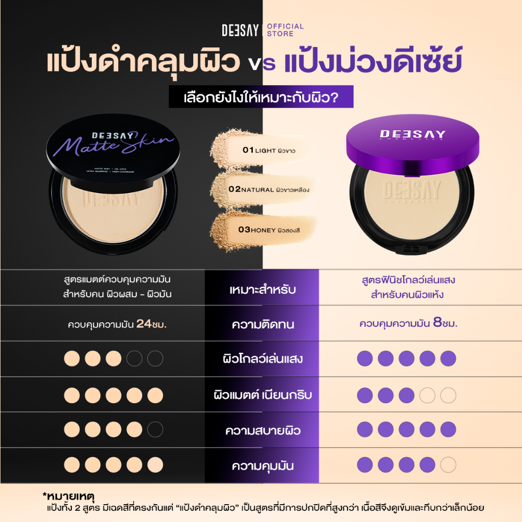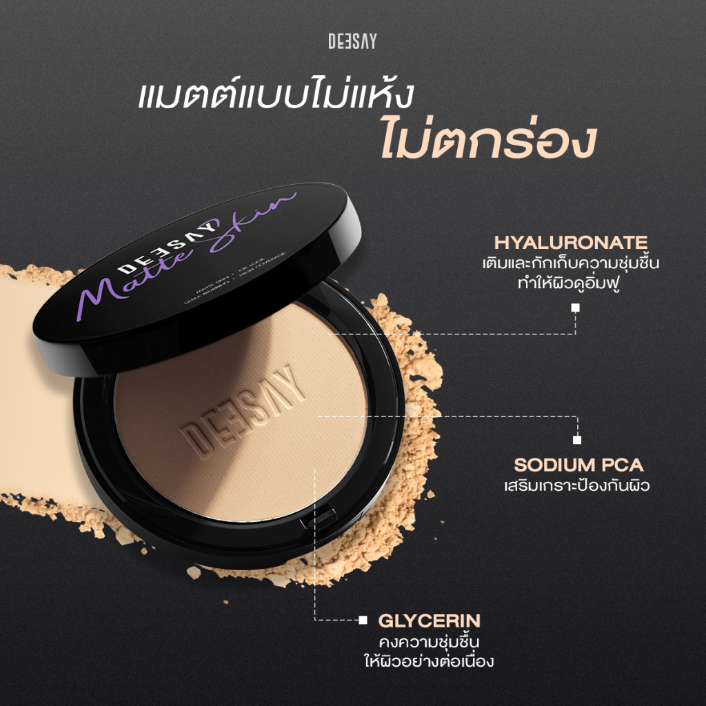 แป้งเนื้อแมทบางเบา คุมมัน 24 ชั่วโมง หน้าไม่มัน ไม่มีส่วนผสมของออยล์ ให้การปกปิด เนื้อแป้งเบาสบายผิวไม่บาดหน้า เบลอผิวทันทีที่ทา ผิวแลดูเรียบเนียน ปกปิดรอยดำและรอยแดงจากฝ้า กระ และจุดด่างดำได้แบบ full coverage พร้อมเทคโนโลยี Soft Focus ช่วยกระจายแสง ให้ผิวแลดูละเอียด สัมผัสเนียนนุ่ม ไม่หนักหน้า ผสานสารช่วยคงความชุ่มชื้นแก่ผิวจาก Advanced Moisture Complex (AMC) ให้ผิวไม่แห้งตึง ไม่เป็นคราบระหว่างวัน เมคอัพติดทนขึ้นพร้อมการปกป้องผิวจากแสงแดดด้วย SPF15 PA+++