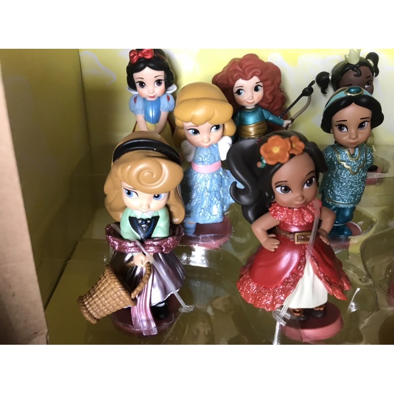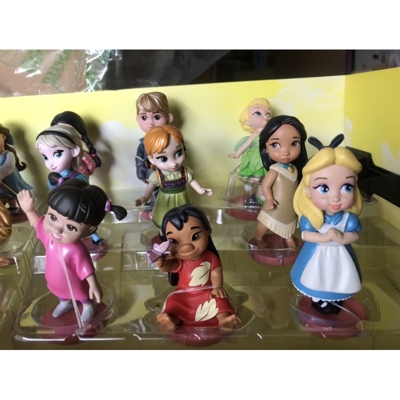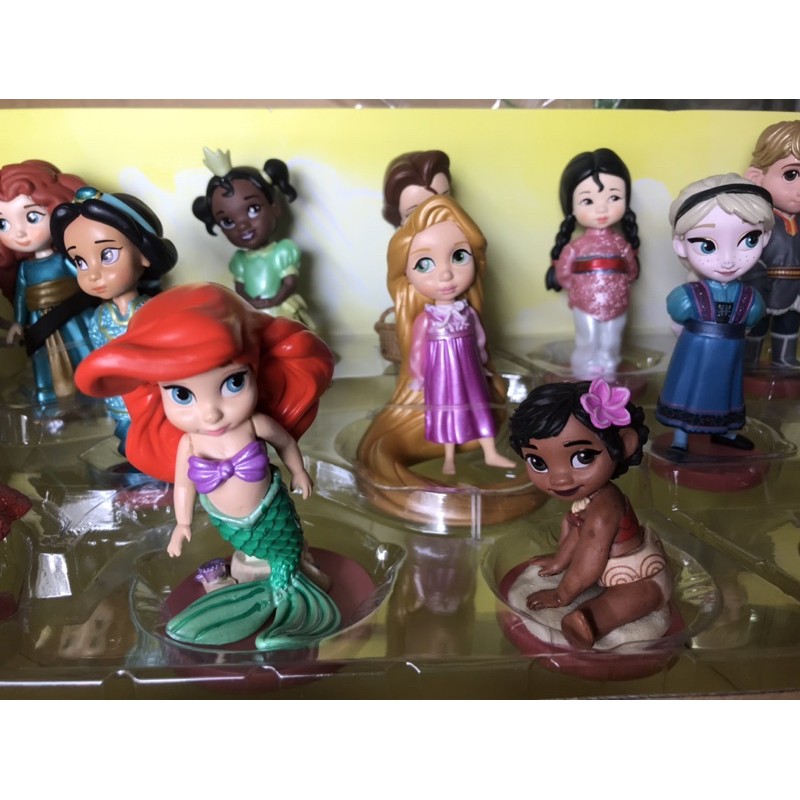 ในชุดมีตุ๊กตามา 20 ตัวคะ ประกอบด้วย Aurora, Elena, Ariel, Moana, Boo, Lilo, Alice, Cinderella, Jasmine, Rapunzel, Elsa, Anna, Pocahontas, Snow White, Merida, Tiana, Belle, Mulan, Kristoff, and Tinker Bell สูงขนาด 3 .75 นิ้ว