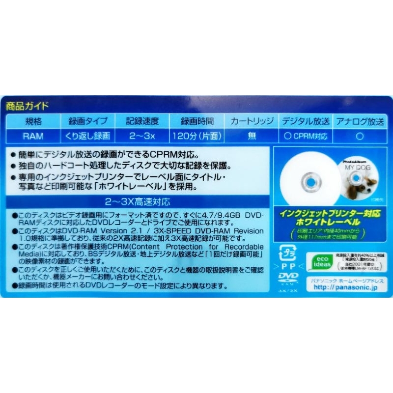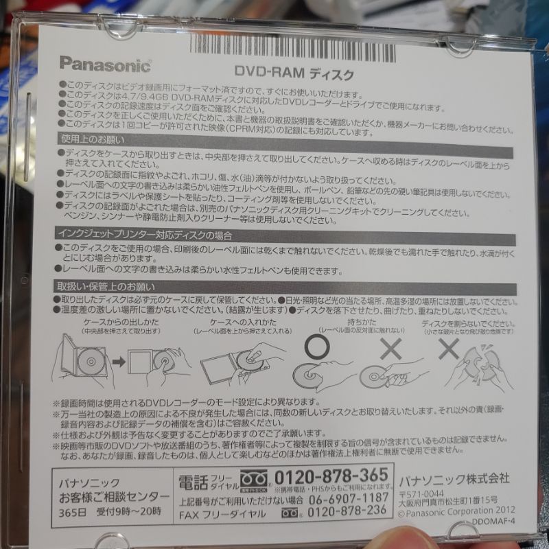 DVD-RAM Panasonic LM-AF120LH หน้าเดียว 4.7GB 120 นาที แยกขาย มีกล่อง 【ใหม่】