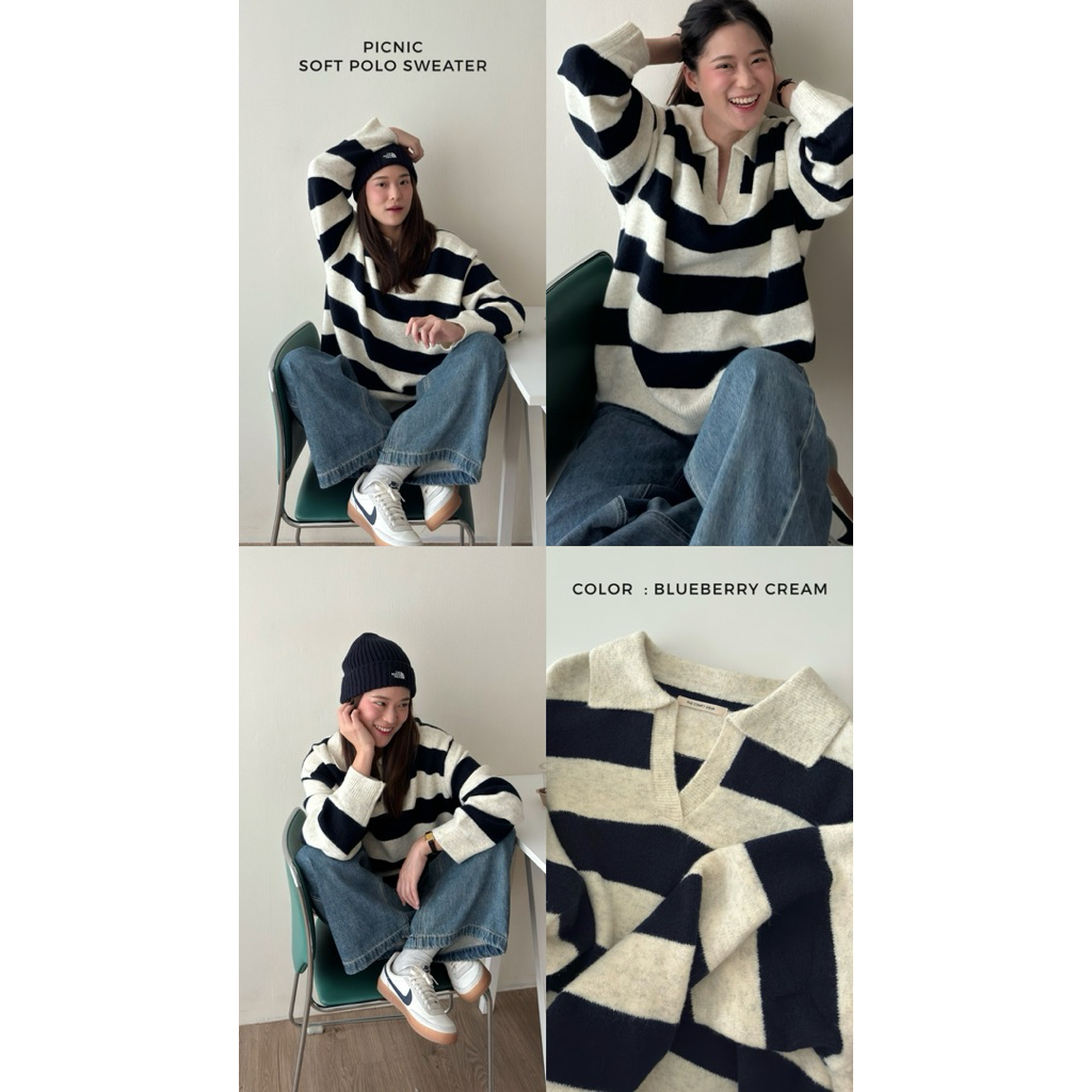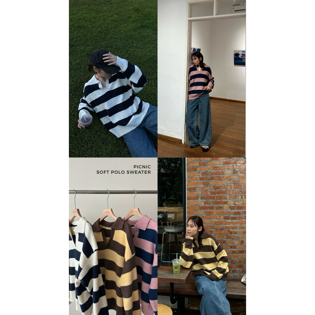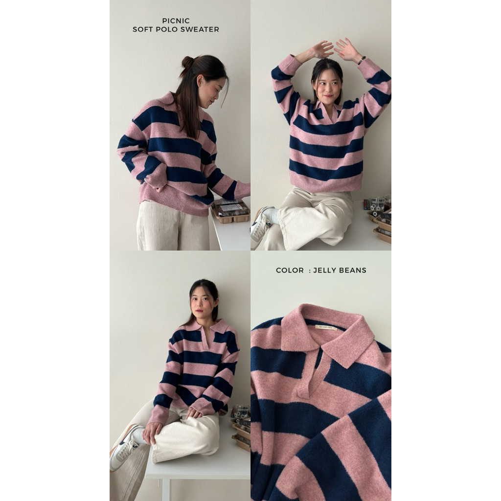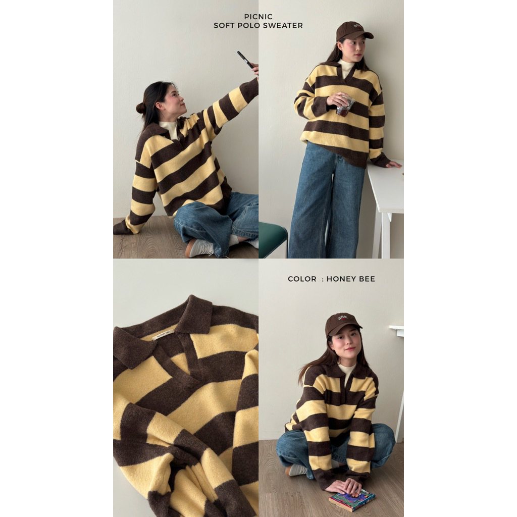 FADTHINGS : picnic soft polo sweater 🧺🐝🩷