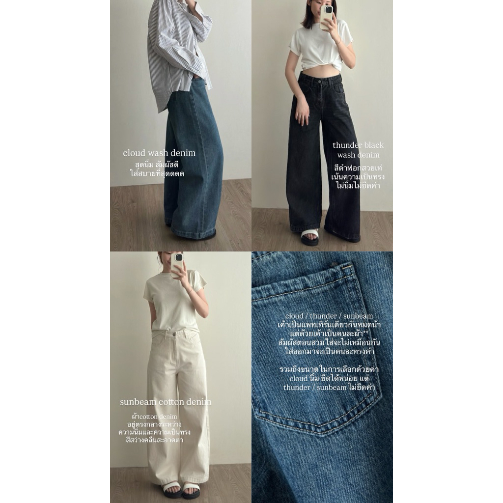 เป็นทรงเดียวกับ cloud/thunder น้า แต่ด้วยความเป็นผ้า cotton denim ความรู้สึกตอนสวมใส่จะไม่เหมือนกันค่า