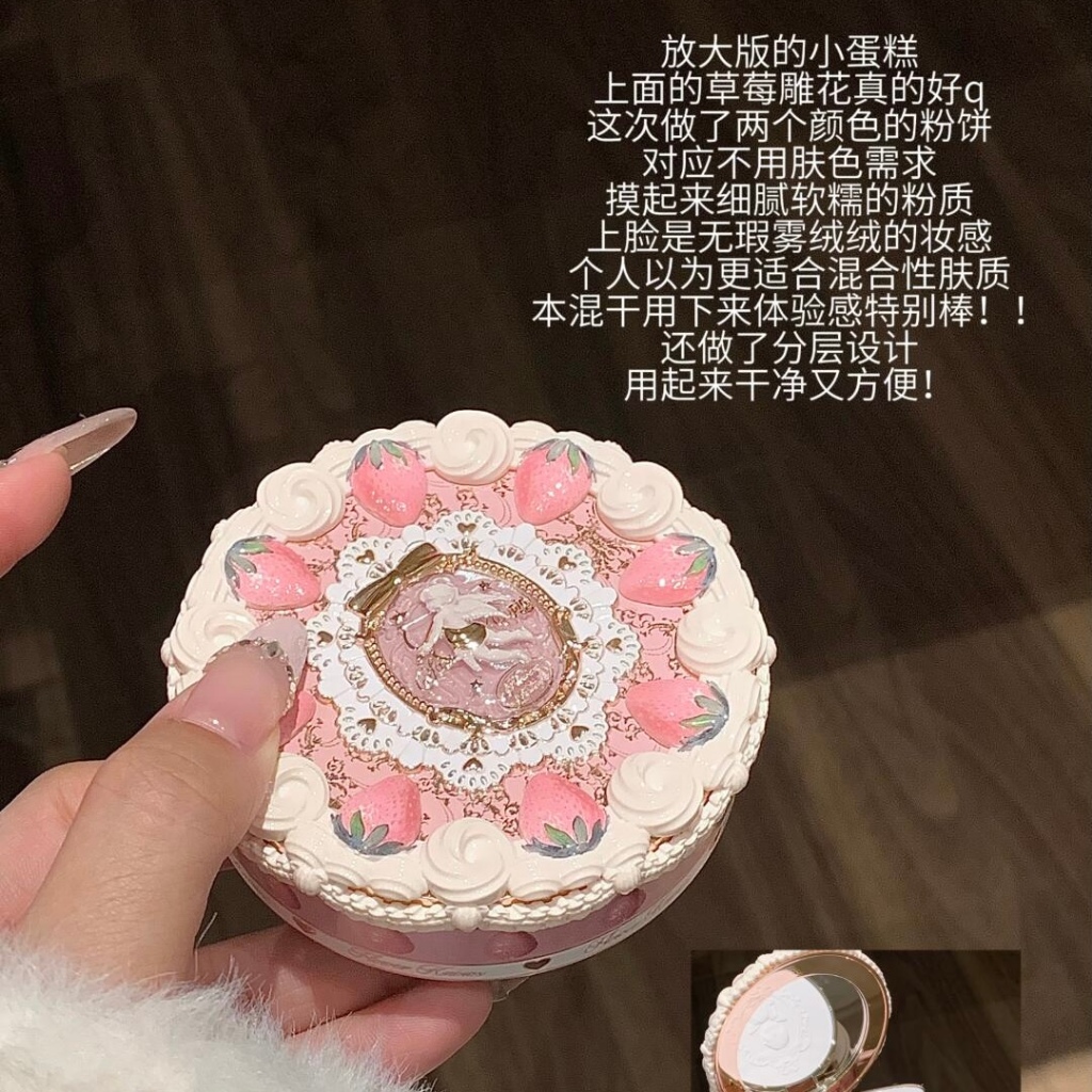 เค้กครีมสตรอเบอร์รี่ที่มีรูปร่างเหมือนเสื่อมเสียแป้งอัดแข็งนี้นำความโรแมนติกมาสู่กิจวัตรประจำวันของคุณ ด้วยกระจกในตัวและพัฟในตัวจึงเหมาะอย่างยิ่งสำหรับการปรับผิวให้เรียบเนียนและสมบูรณ์แบบในระหว่างการเดินทาง