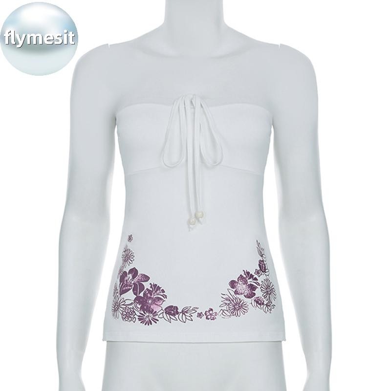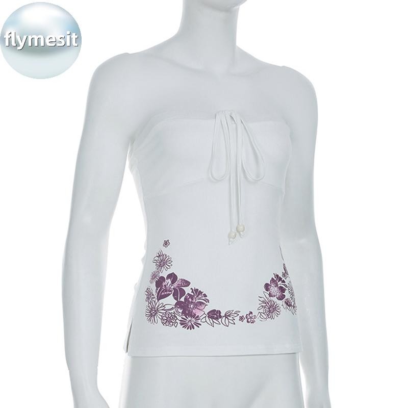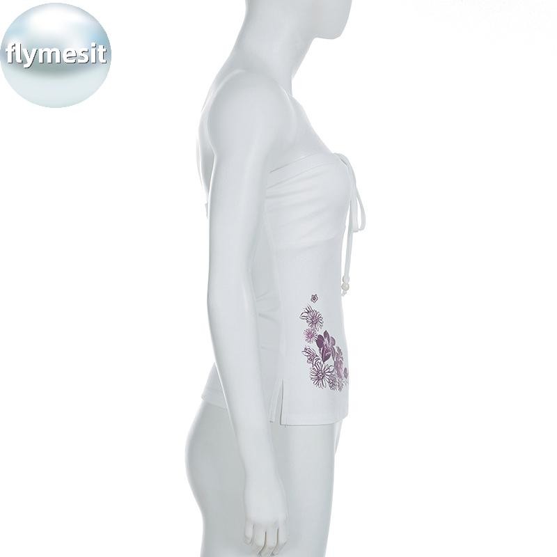 Flymesit American Retro Camisole มีลายพิมพ์ดอกไม้ที่ด้านบน สไตล์เซ็กซี่สำหรับฤดูร้อน