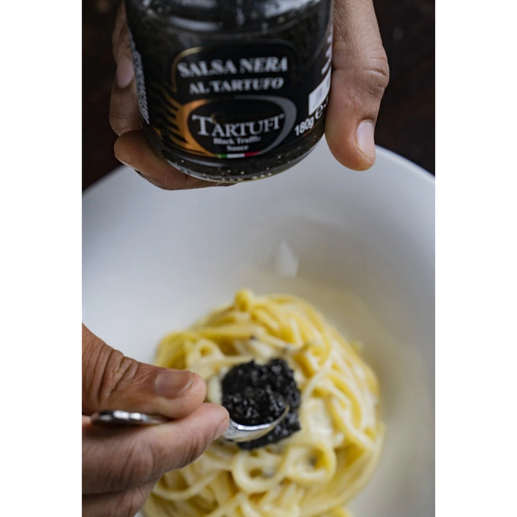 ซอสปรุงอาหาร เห็ดทรัฟเฟิลดำ (ผสมเห็ดทรัฟเฟิลฤดูร้อน 5%) เป็นผลิตภัณฑ์ที่ง่ายที่สุดในการปรุงด้วยส่วนผสมทุกชนิด มีความเข้มข้นและกลิ่นหอมที่อร่อยทำให้เหมาะสำหรับเมนูไข่เจียว (ออมเล็ต) และพาสต้า