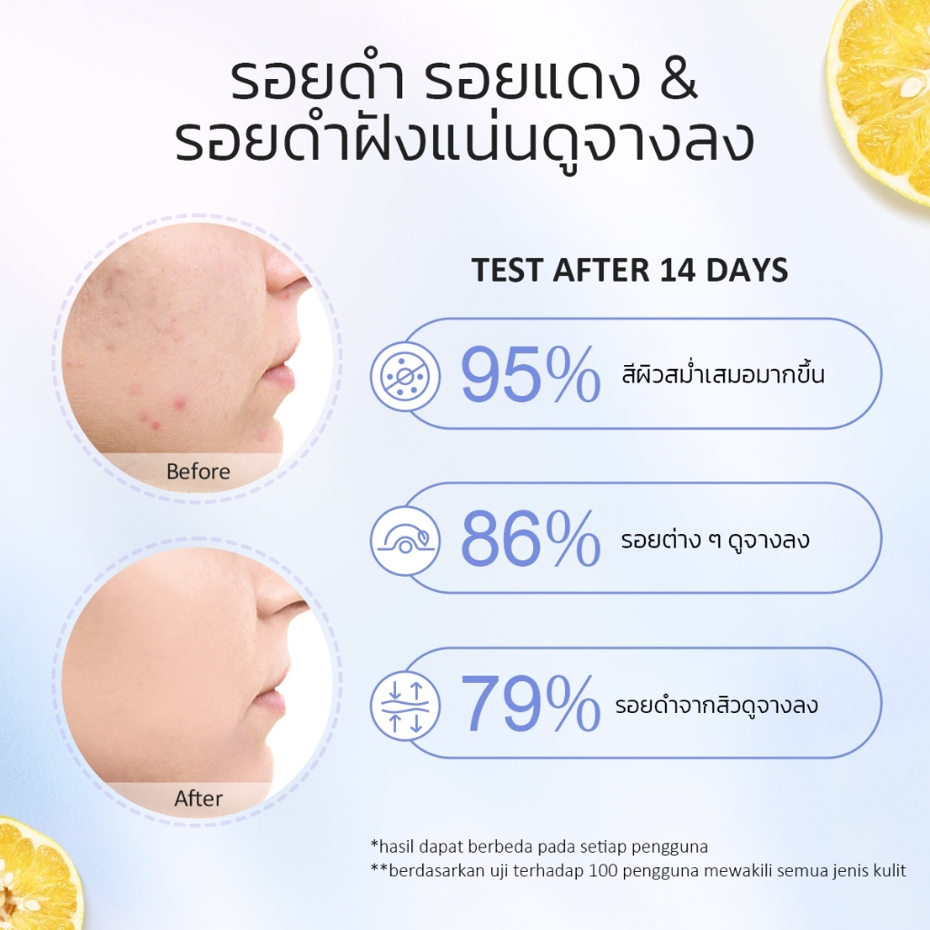 - ทำให้จุดด่างดำสลายไปพร้อมทั้งให้ความชุ่มชื้นให้ผิว