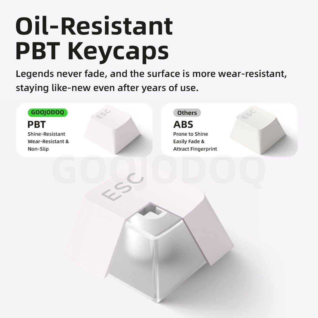 Durable & Oil-Resistant: Made from double-shot PBT for long-lasting legends that never fade. The oil-resistant surface stays matte and clean, delivering a dry, premium feel even after extended use.