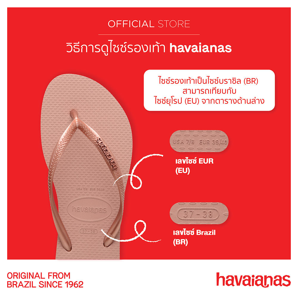 ฮาวายานัส (Havaianas) รองเท้าแตะจากบราซิล ตั้งแต่ปี 1962 พื้นรองเท้ายางอันเป็นเอกลักษณ์และดีไซน์ที่ทันสมัย สีสันสดใส
