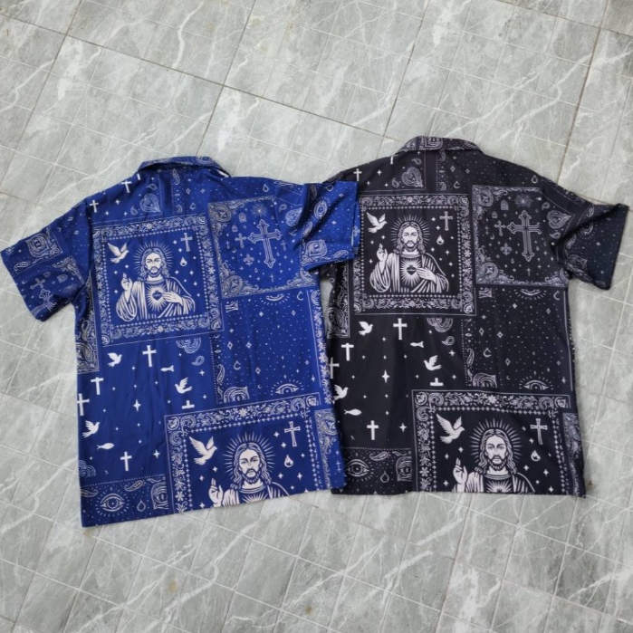 ยกระดับลาย Bandana ดั้งเดิมพิมพ์ลาย Jesus, Cross, Dove และ Eye symbol ล้อมด้วยดอกไม้ Paisley