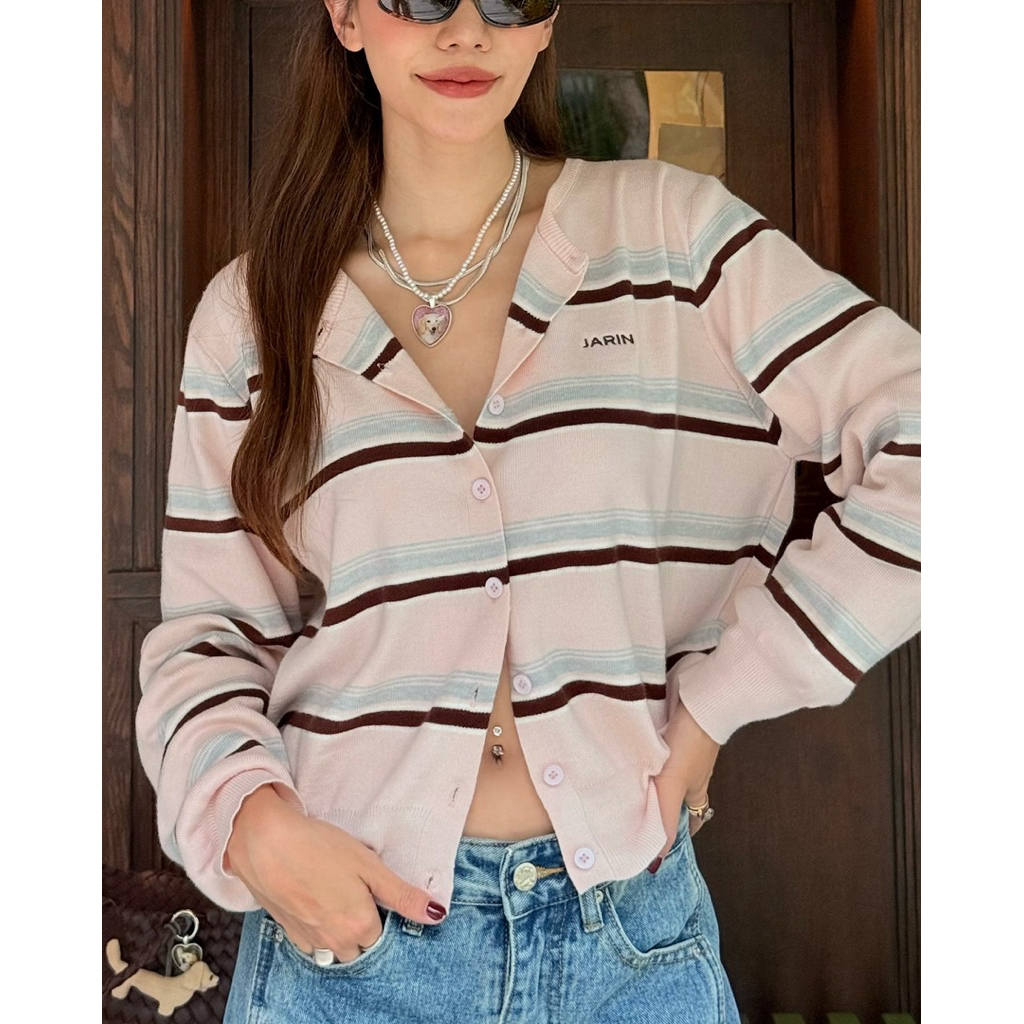 กรี๊ดดด เสื้อ cardigan รุ่นใหม่ผ้าลาย stripe คู่สีคือสวยมากก เป็นผ้าไหมพรมงานคุณภาพมาก นุ่มใส่สบาย ทรงสวย จะใส่คลุมหรือใส่เดี่ยวๆก็เริชช