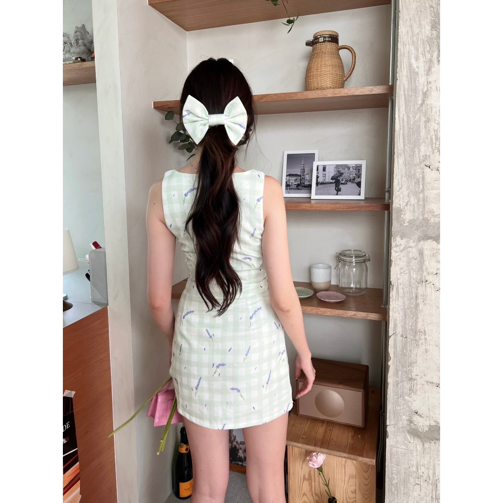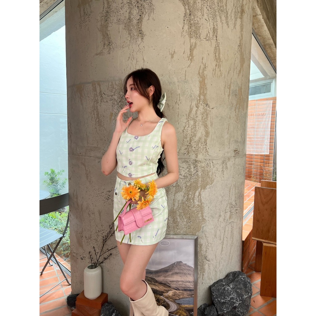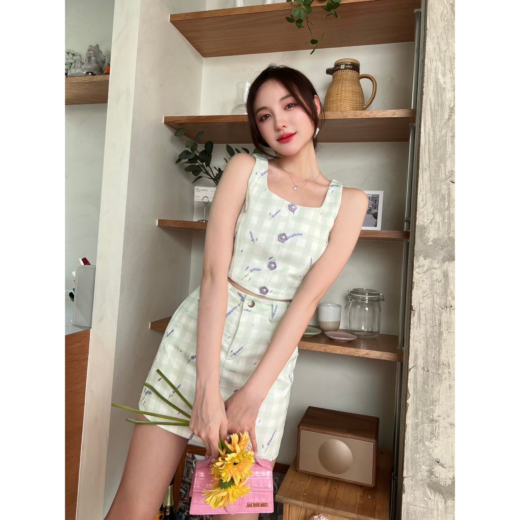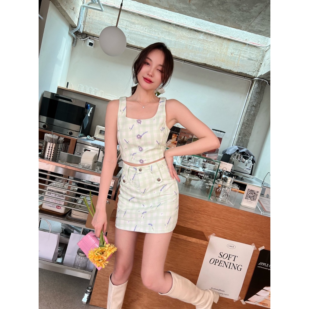 เซ็ต 3 ชิ้น เสื้อ+กระโปรง+โบว์ เปล่งปลั่งสดใส ไม่หลุดวัยมัธยม! น้องเป็นงานเซ็ตผ้ายีนส์พิมพ์ลายสก็อตสีเขียวอ่อน ตามด้วยลายดอกไม้ประปรายไปอีกชั้น ตัวเสื้อแขนกุด ด้านหน้าแต่งกระดุมดอกไม้เก๋ๆ แพทเทิร์นเข้ารูปสวย ขึ้นเทรงเป๊ะ ใส่คู่กับกระโปรงตัวสั้นคือปังเวอร์ งานทรงเอสวย อวยทั้งวันก็ไม่หมด มีซิปหลังและซับใน ใครไวคนนั้นได้ สไตล์แบบนี้ขายดีแน่นอนจ้าแม่