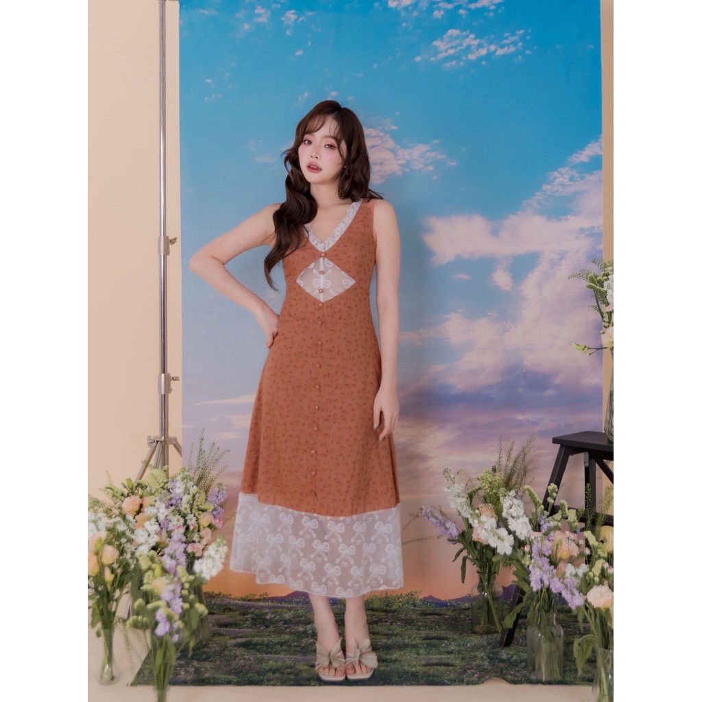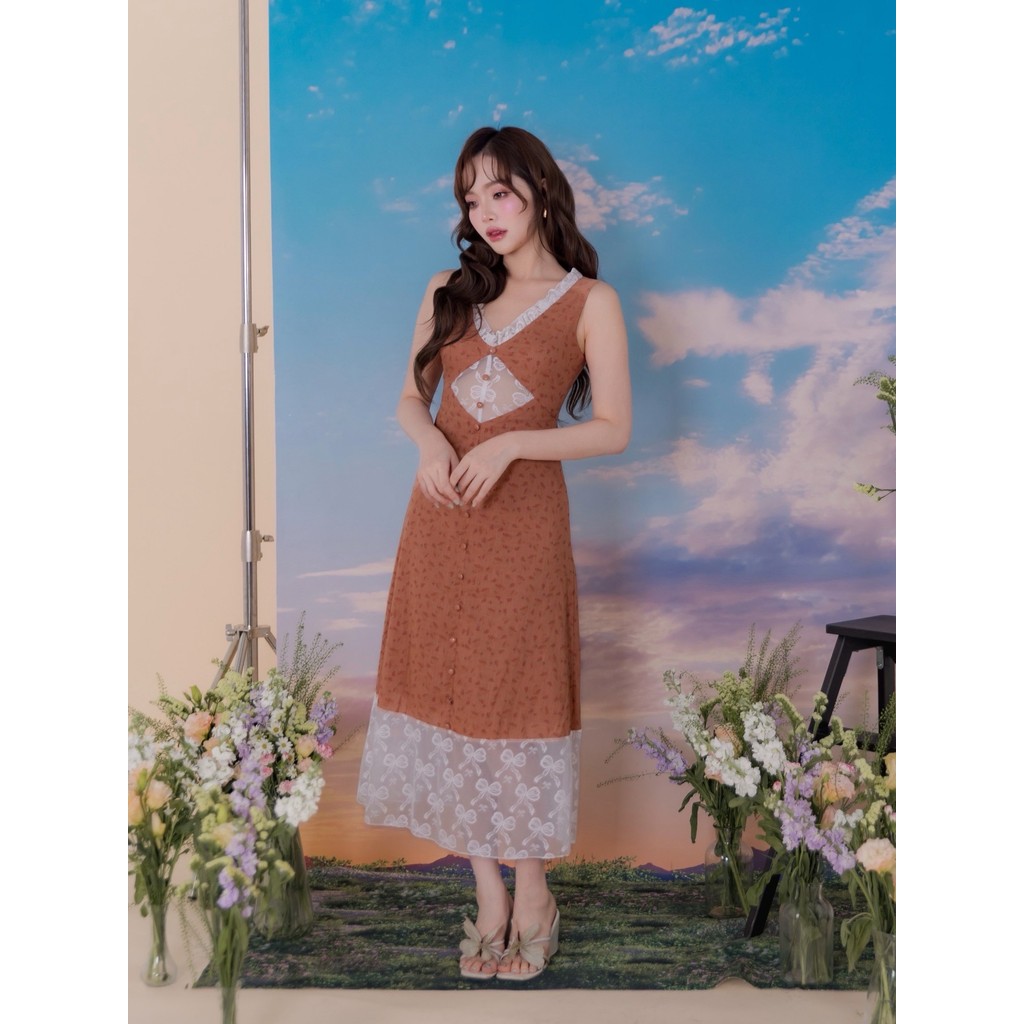 สวยจนอยากกรี้ดออกมา! กับ Maxidress สุดน่ารัก ที่มาเพื่อขยี้หัวใจของสาวๆ! ว้าวสุดกับงานผ้าใยธรรมชาติ ดีเทลทอละเอียด พร้อมกับพิมพ์ลายดอกไม้เล็กๆทั้งตัว ใต้อกคัตติ้งซีทรูเว้าสุดแซ่บ ที่ด้านหน้าแต่งกระดุมหลอกแนวยาว ตัวแขนกุด งานคอวี มีซิปหลังและซับใน งานชายแต่งลูกไม้ ยิ่งเสริมให้สาวๆสวยใส กินใจในทุกย่างก้าว!