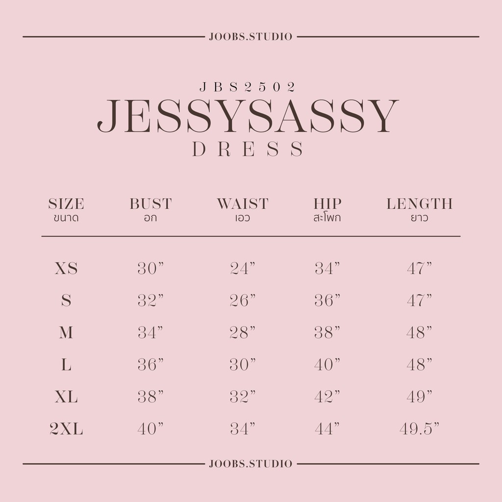 L อก 36 เอว 30 สะโพก 40 ยาว 48