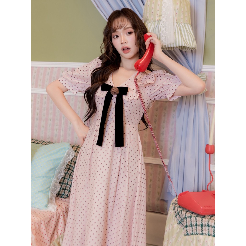 crop..shop มินิเดรสลายจุด งานสายเดี่ยว คุณหนู งานน่ารัก ละมุ…