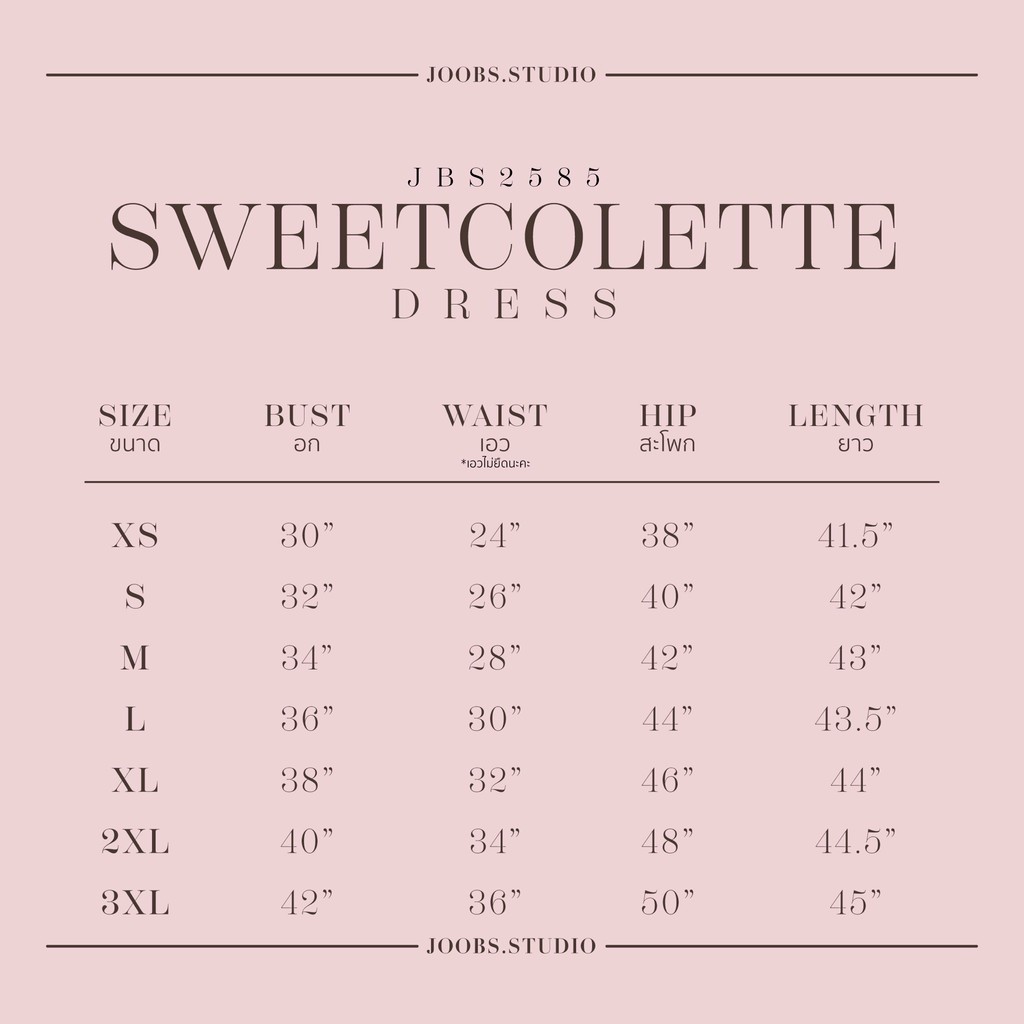 L อก 36 เอว 30 สะโพก 44 ยาว 43.5