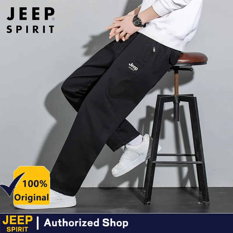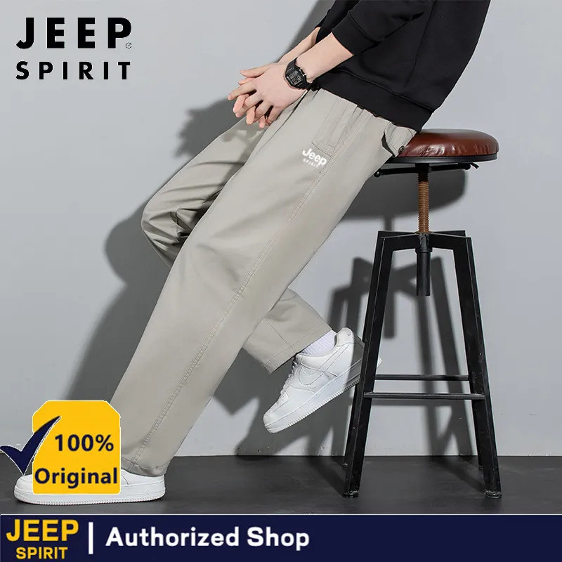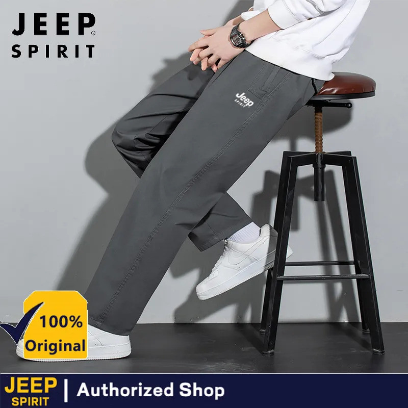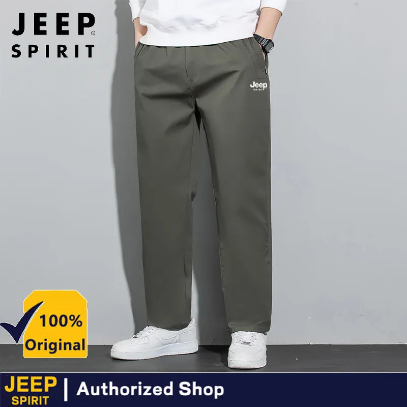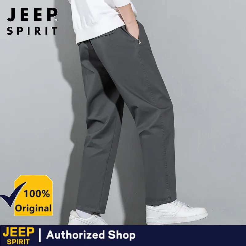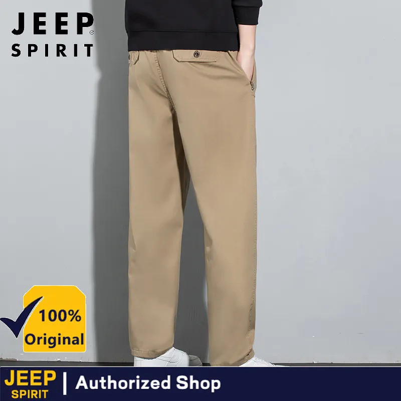 JEEP SPIRIT กางเกงลําลองกลางแจ้งสําหรับผู้ชายสีทึบ กระชับสัดส่วน คุณภาพสูง สไตล์คลาสสิก จากผ้าฝ้าย