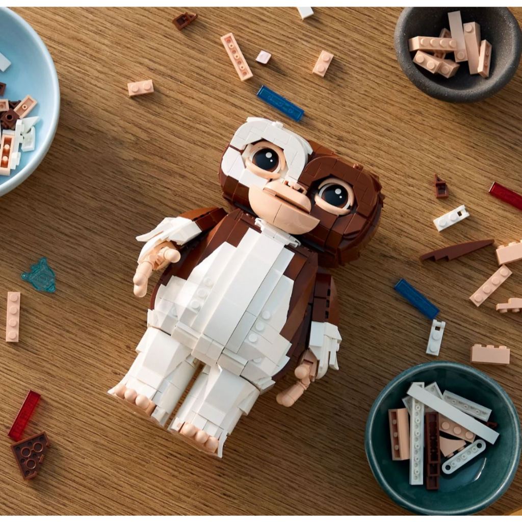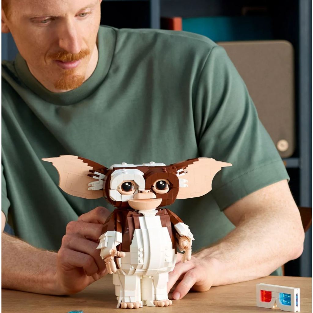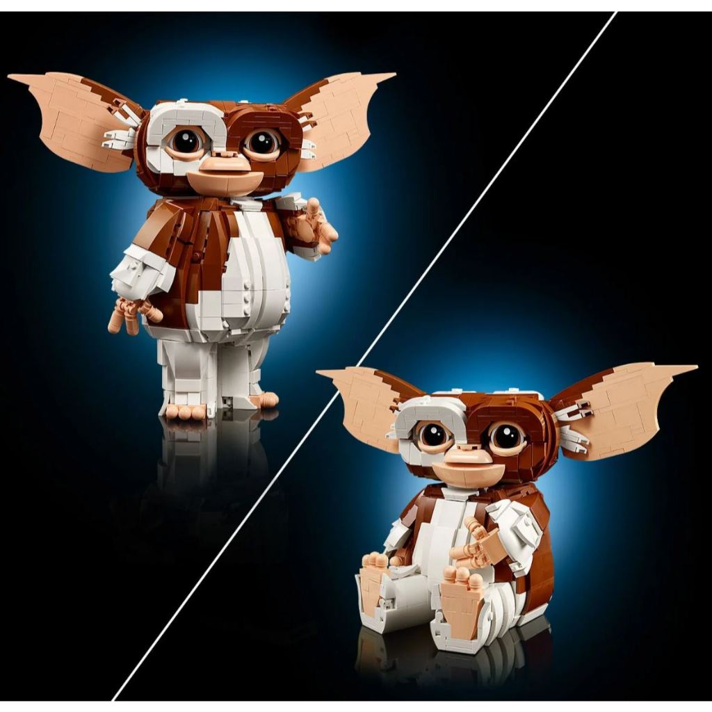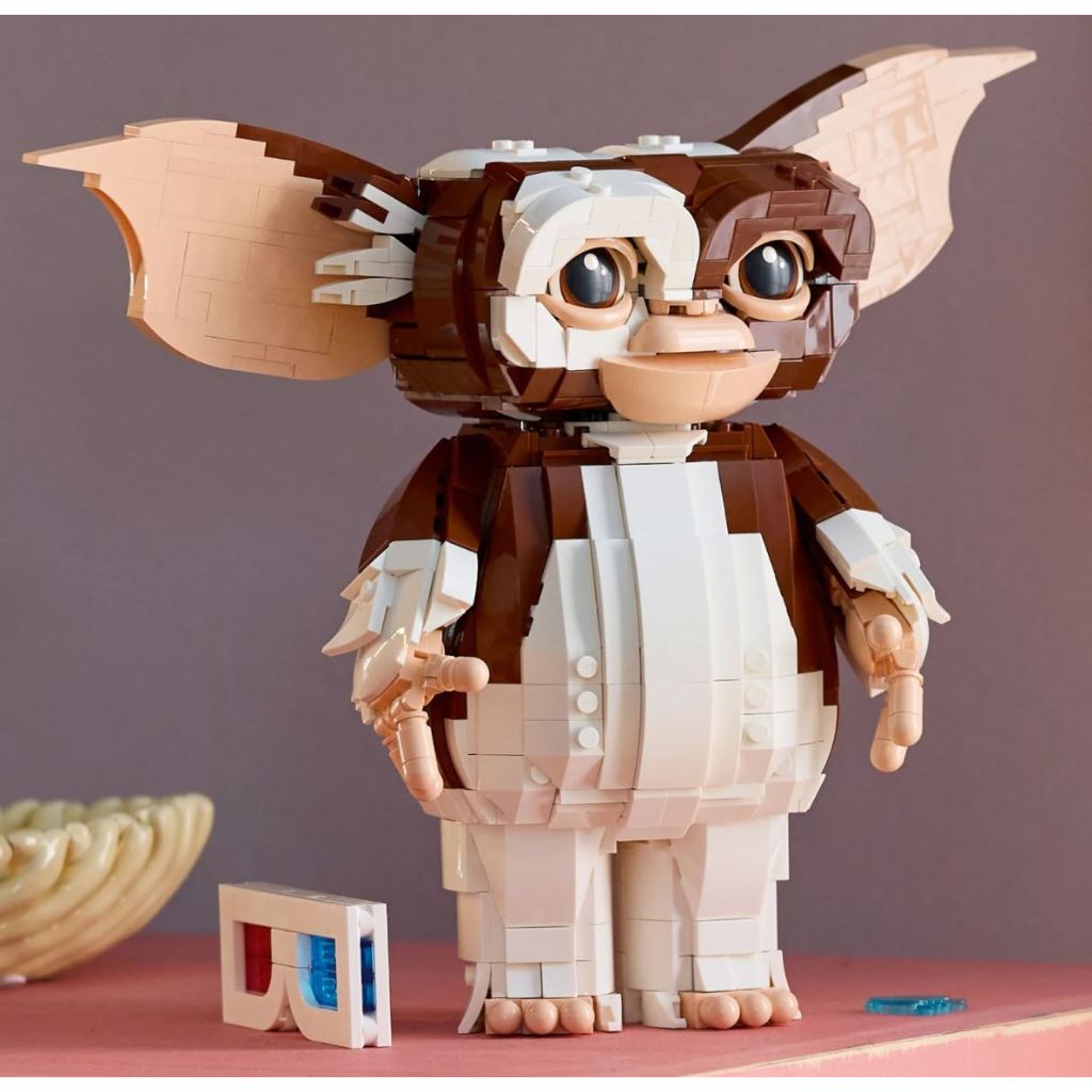Show your affection for the cutest Mogwai in the 1984 film Gremlins™ with a LEGO® Ideas posable figure of Gizmo (21361). This collectible model building set for adults allows you to capture all of Gizmo’s adorable characteristics in LEGO style. Assemble the Gizmo figure so he is either standing up or sitting down. Rotate his head and adjust his ears, arms, hands, fingers and feet to create different looks. The set also includes iconic accessories to make your display even more irresistible: a water splash element, alluding to how water makes Mogwais replicate, which attaches to Gizmo’s back, plus brick-built 3D glasses like the ones Gizmo used to read comics.