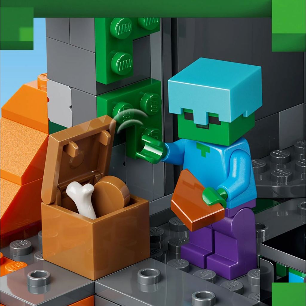 DIMENSIONS – The 284-piece LEGO® Minecraft Zombie Dungeon building set measures over 21 cm (8.5 in.) high, 12 cm (5 in.) wide and 15 cm (5.5 in.) deep