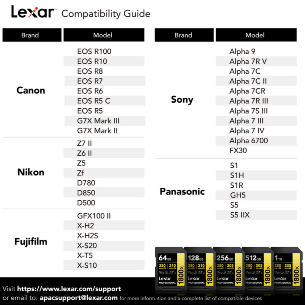 ออกแบบมาสำหรับกล้อง DSLR หรือกล้องมิเรอร์เลสของคุณ การ์ด Lexar Professional 1800x SDXC UHS-II GOLD Series ช่วยให้
