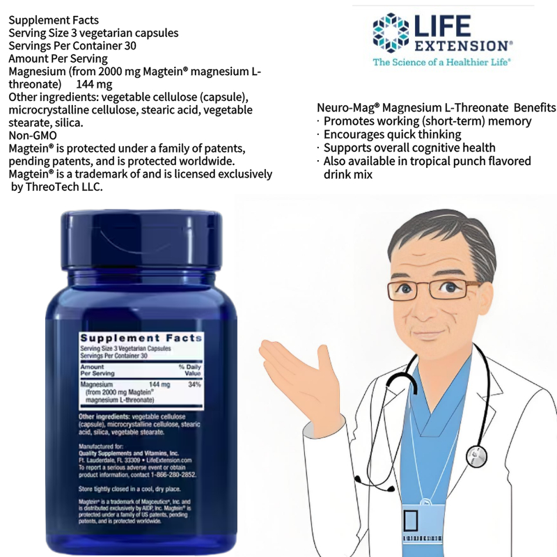 Life Extension Neuro-Mag® Magnesium L-Threonate 90 vegetarian capsules Item # 01603