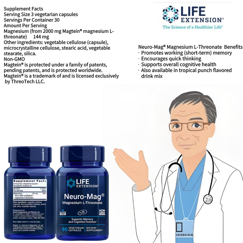 ตัวเลือกที่เลือก Life Extension Neuro-Mag® Magnesium L-Threonate 90 vegetarian capsules Item # 01603 ฿500