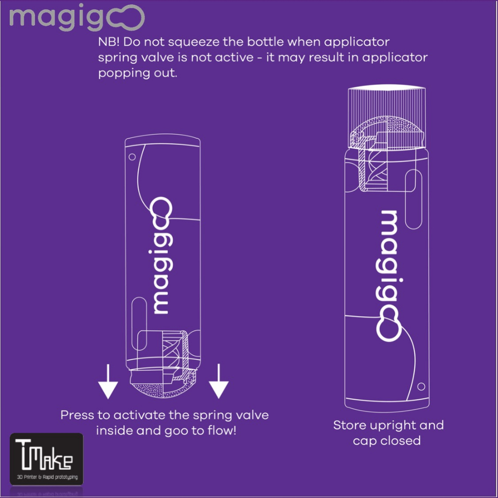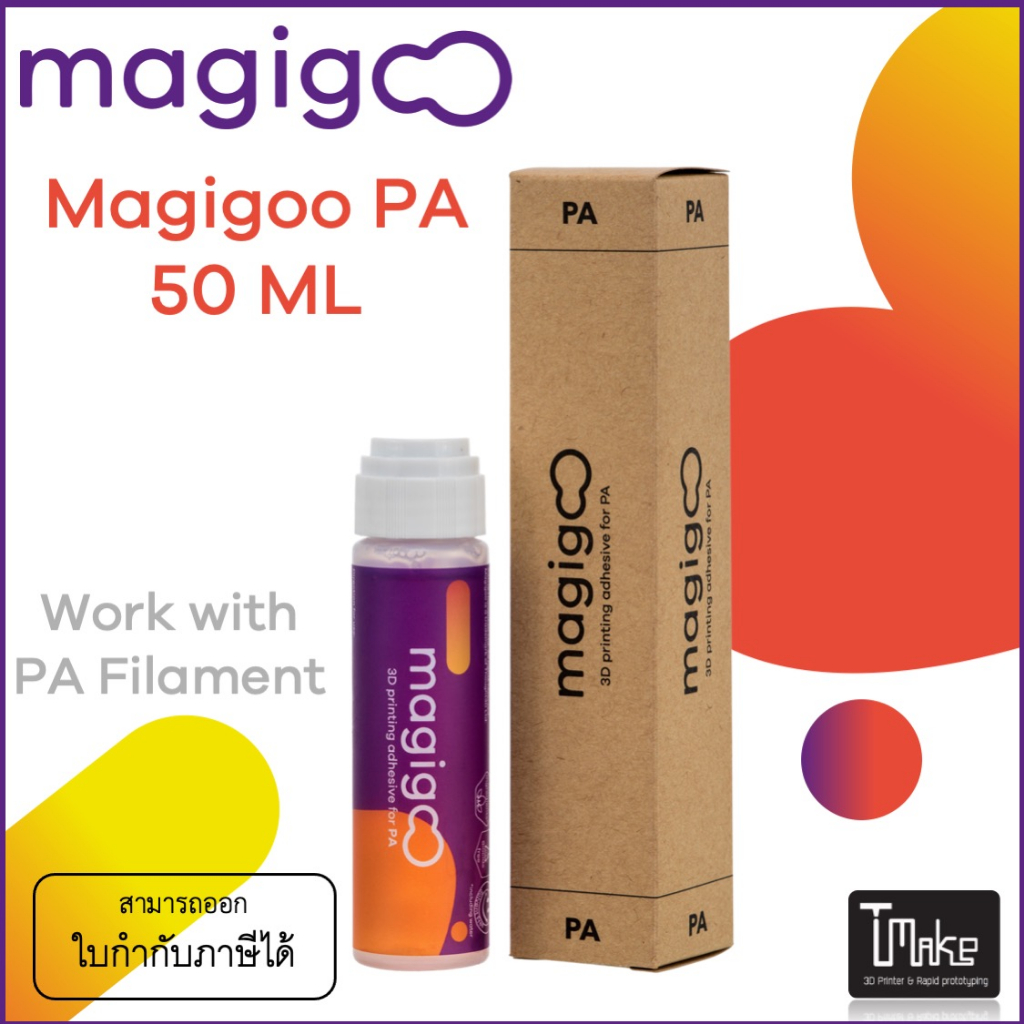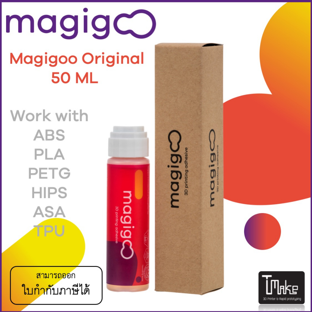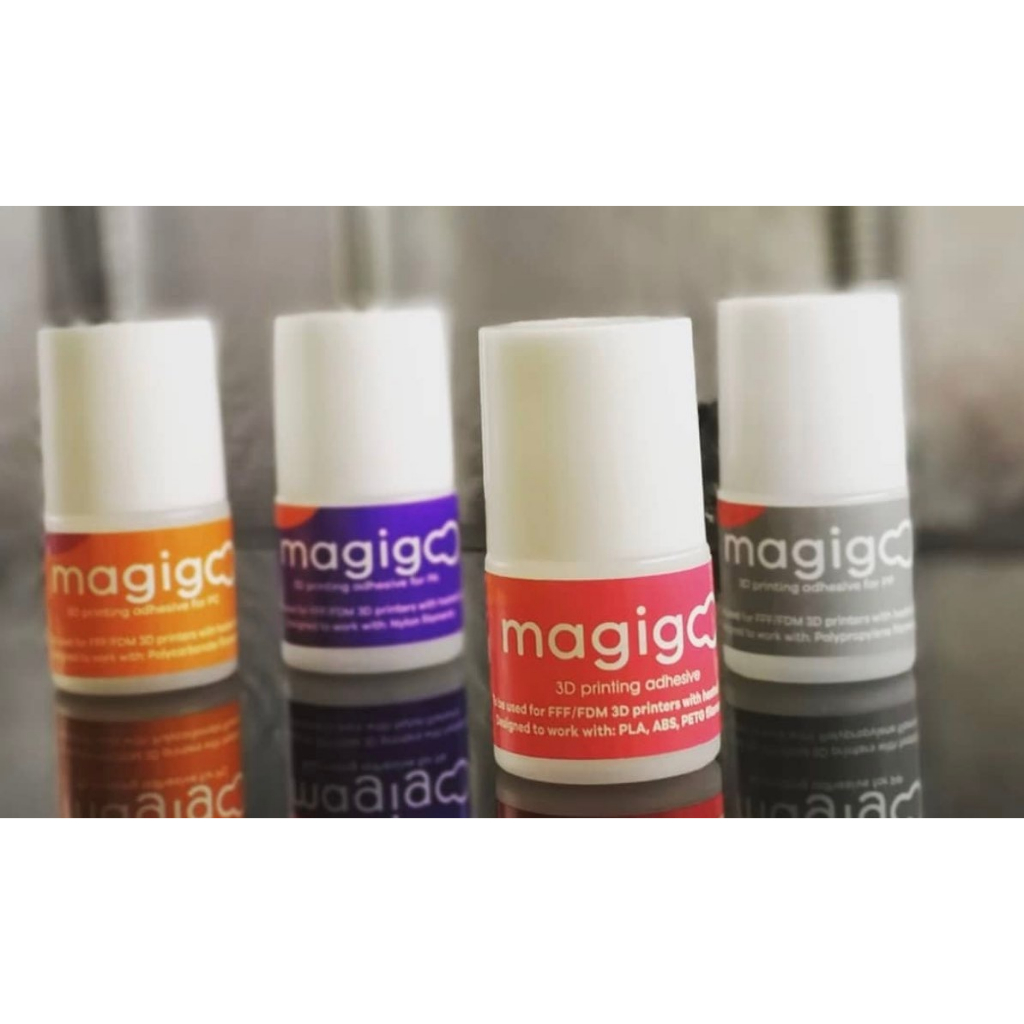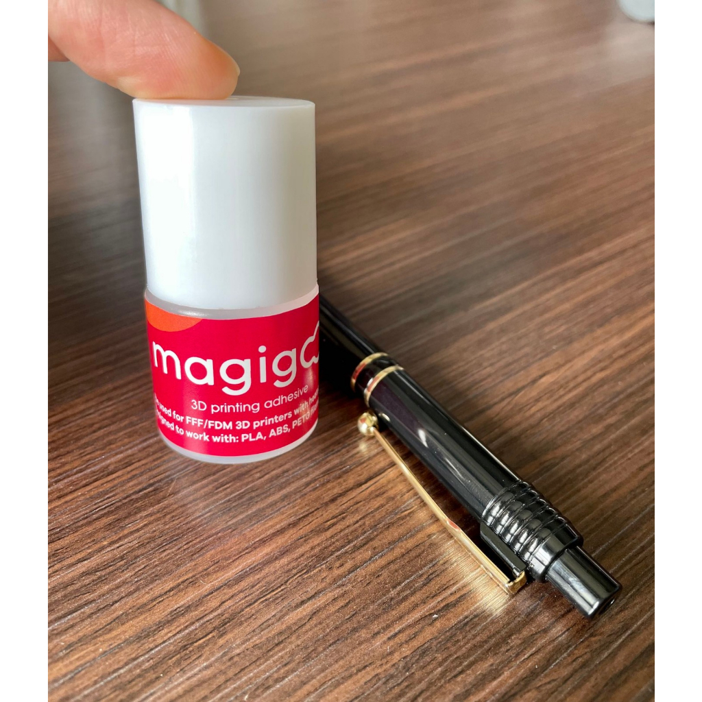 All you need for sure adhesion of 3D prints Magigoo is an easy to use 3D printing adhesive designed to address 'the first layer not sticking problem'. Magigoo ensures a strong adhesion to the hot plate. But the magic starts when printing is ready: just wait for the plate to cool down and then remove your prints with just a finger flick! In addition, Magigoo helps to prevent warping. Isn't it magic? Regardless of you being a hobbyist or professional - it is extremely rewarding to have a 30 hour print complete without any warping and having it release easily once cooled.