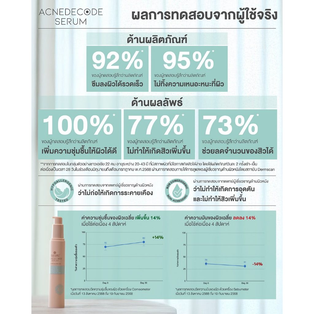 เซรั่มดูแลปัญหาสิวสูตรเข้มข้น เนื้อสัมผัสบางเบา พร้อมดูแลผิวอย่างอ่อนโยน ด้วยส่วนผสมสำคัญที่ช่วยจัดการปัญหาสิวอย่างตรงจุด ช่วยควบคุมความมันบนผิว รูขุมขนแลดูกระชับ ปลอบประโลมการอักเสบของสิว ช่วยลดเลือนจุดด่างดำ และฟื้นบำรุงผิวให้เรียบเนียนกระจ่างใส