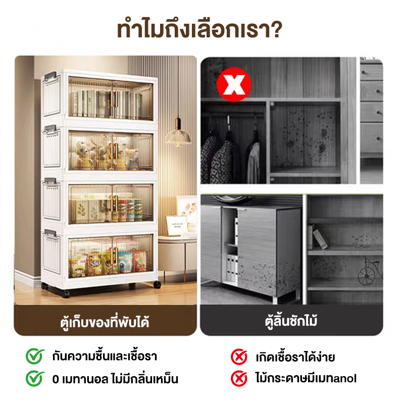 MULI ตู้เก็บของพับได้ ตู้เก็บของ กันความชื้น 5 ชั้น สำหรับคอนโดพื้นที่เล็ก ส่งฟรี 100-500L