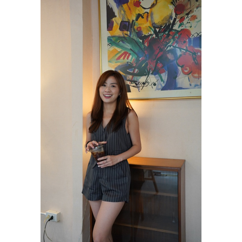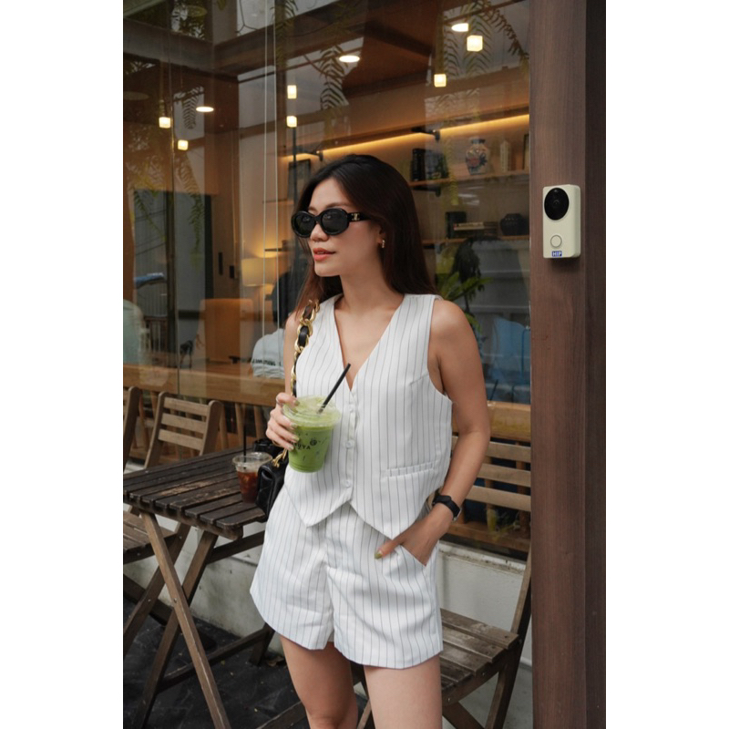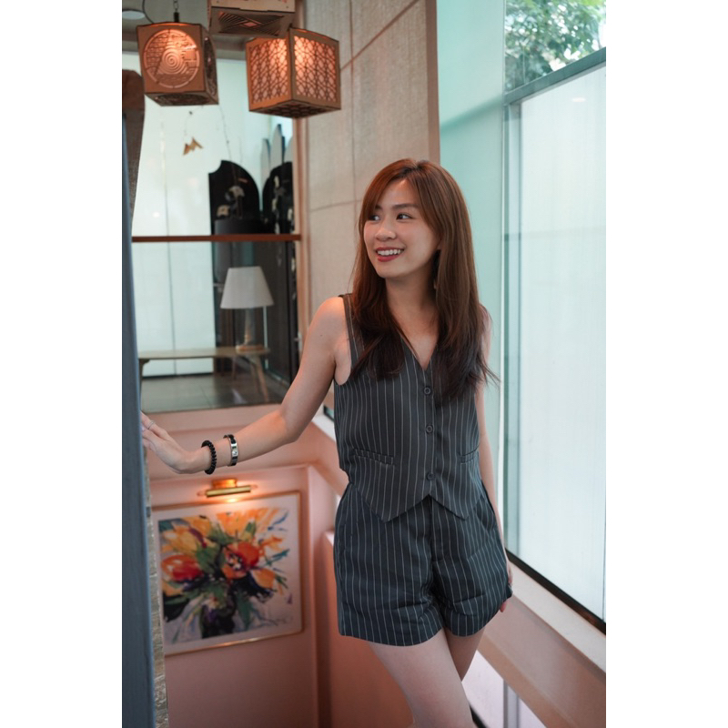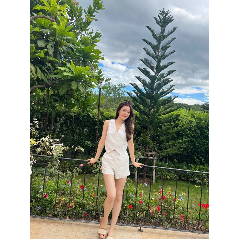 NEW IN ชิคไม่ไหววว กับชุดเวสกั๊กลายทางสุดชิค มาพร้อมกางเกงขาสั้น เนื้อผ้าดีเหมือน ใส่ง่าย ตัวกางเกงมีสม๊อคหลังยางยืด ตะขอและซิปหน้า ตัวเสื้อกระดุมเม็ดเล็กตามสีเนื้อ ใส่คู่กันก็น่ารัก หรือจะใส่แยกกันก็ปังไม่ไหวววว