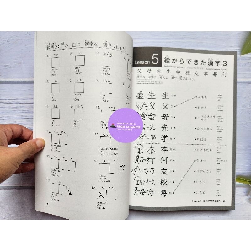 หนังสือฝึกคันจิสำหรับผู้เริ่มเรียนมีรูปภาพประกอบทำให้เข้าใจง่ายและเพิ่มการจดจำได้ดีขึ้น และแบบฝึกหัด+เฉลยในเล่ม