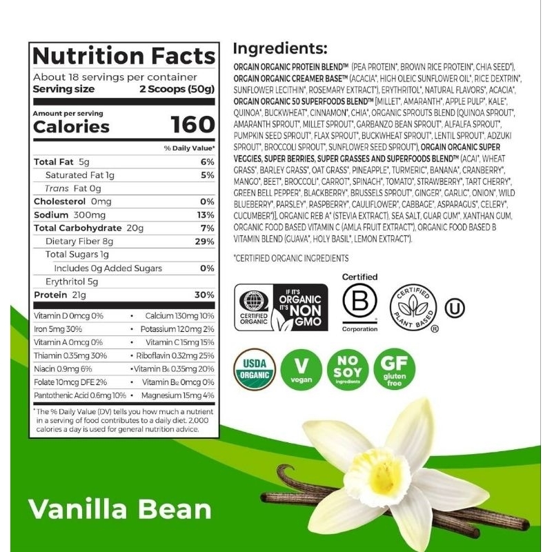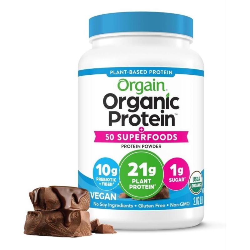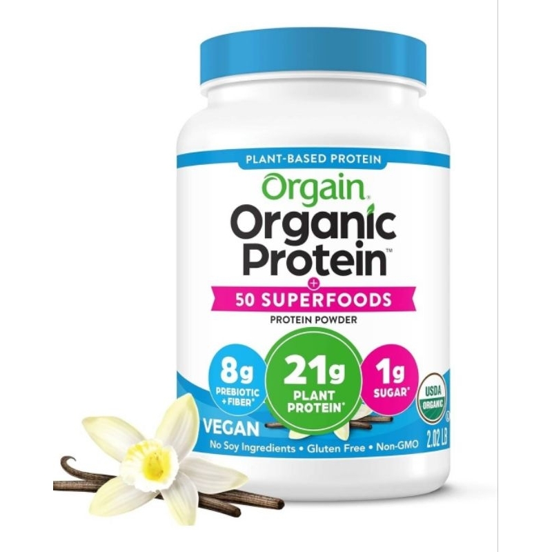Orgain Organic Vegan Protein + 50 Superfoods Powder - 21g Plant Based Protein, 8g Prebiotic Fiber, No Lactose Ingredients, Gluten Free, No Added Sugar, Non-GMO, 2.02 lb