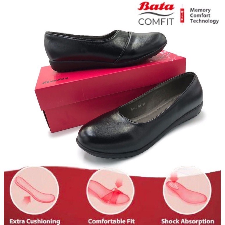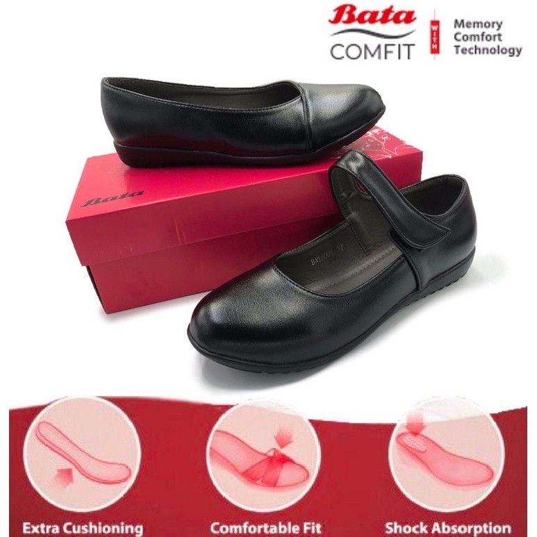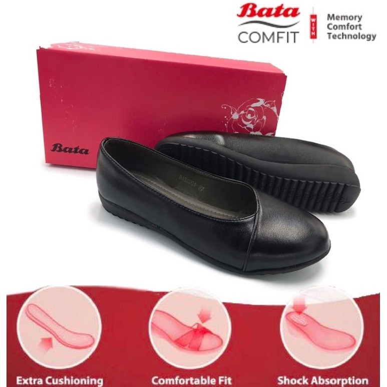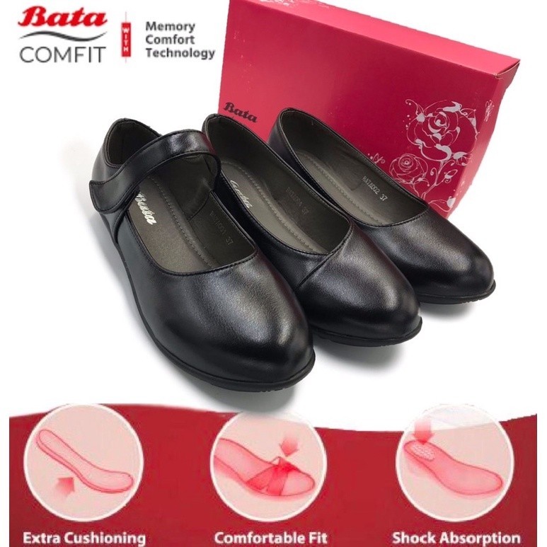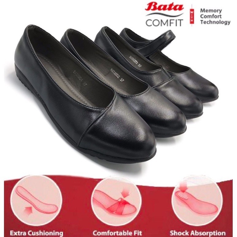 Premier Comfort-Pro Bata Ladies Comfit Dynamic Office Working Rounded-Flat Black Official Shoes Kasut Kulit Hitam BATA