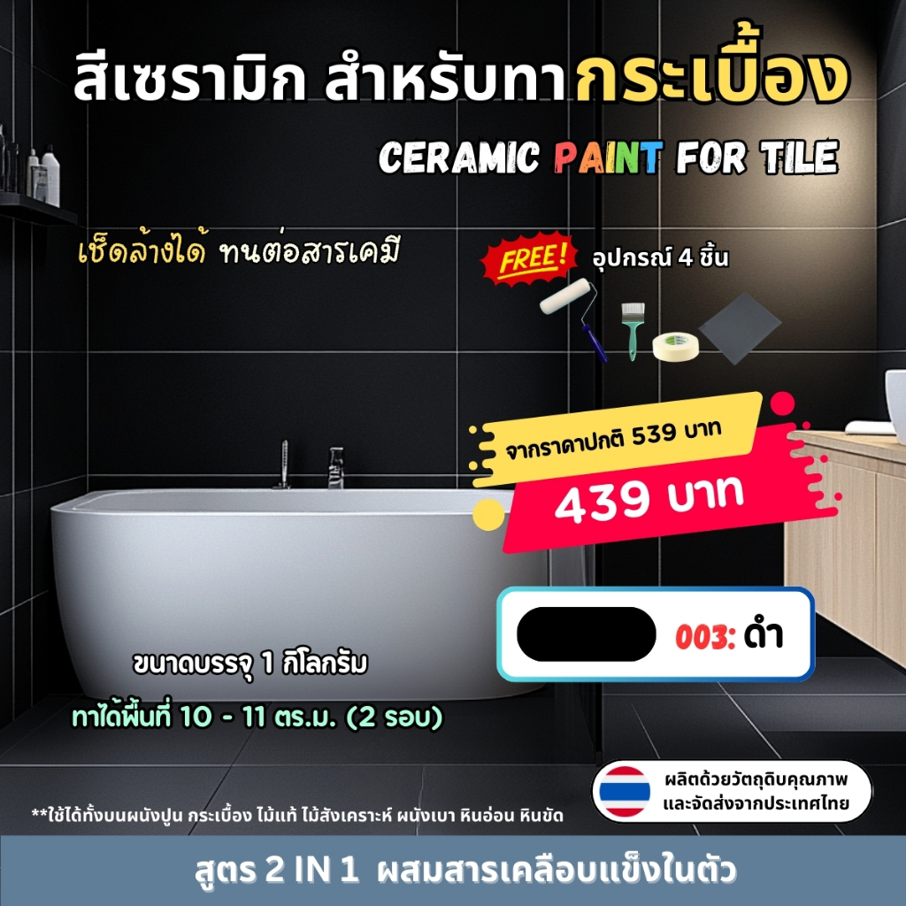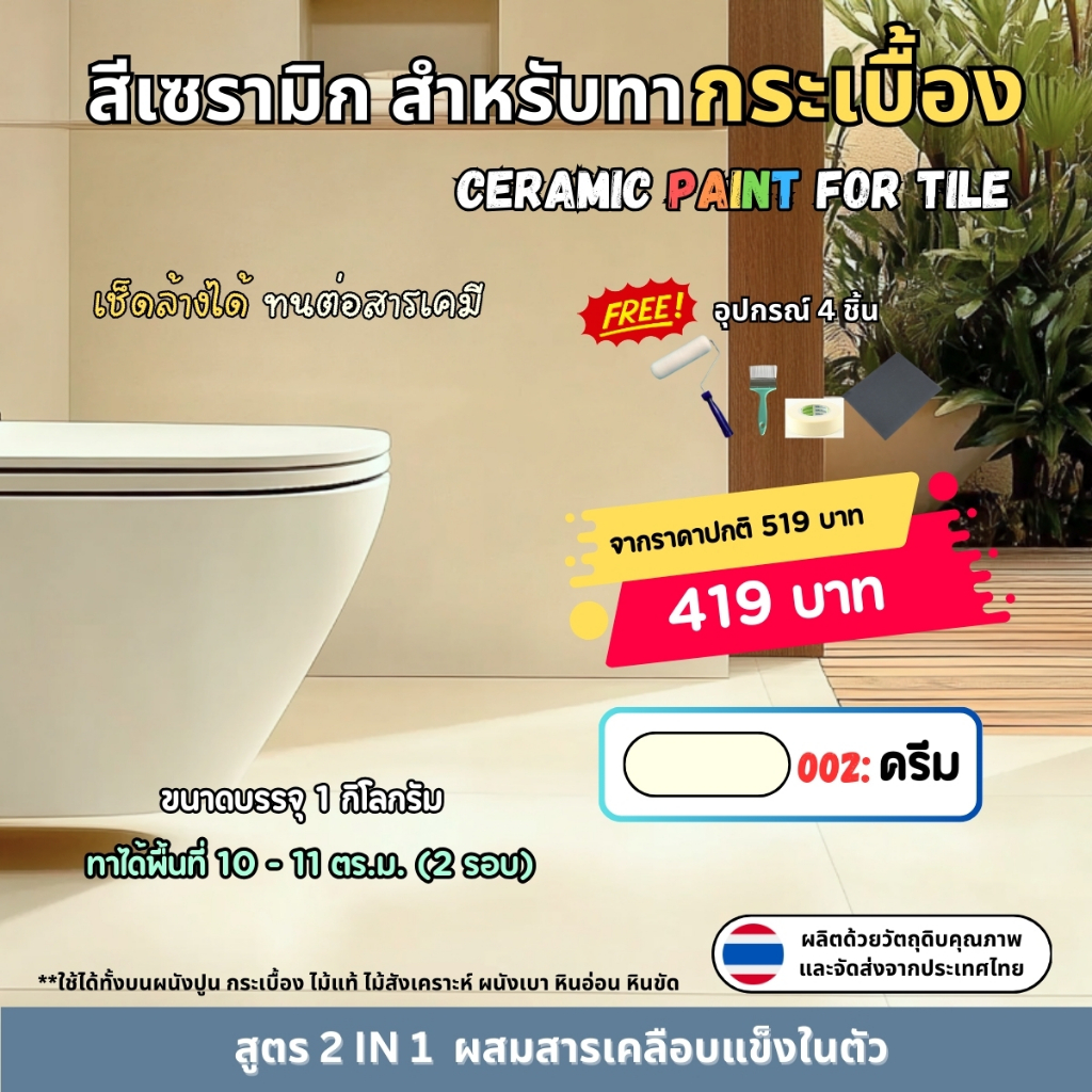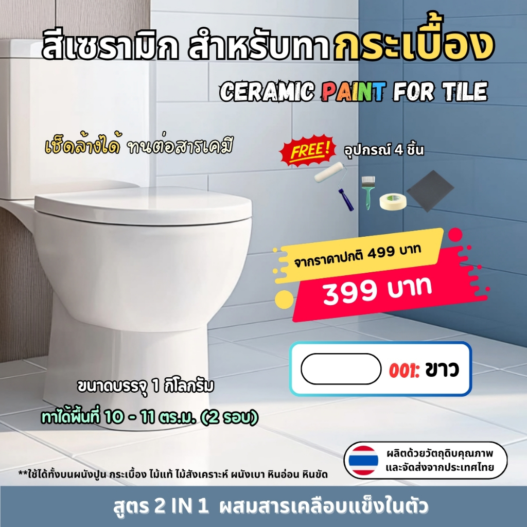 🎁 แถมฟรีอุปกรณ์ทาสี 4 ชิ้น (ลูกกลิ้ง 4 นิ้ว, แปรงทาสี, กระดาษทราย, เทปกาวย่น)